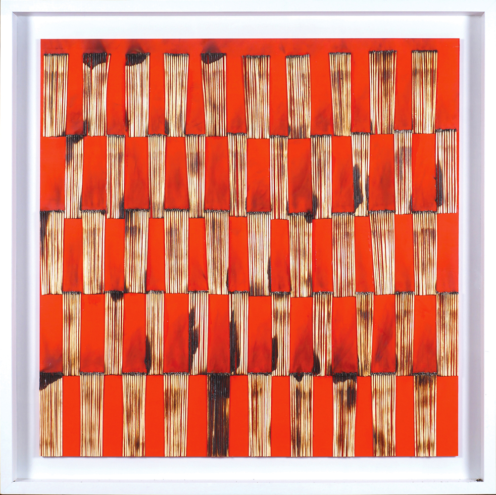 "Dessin de Feu sur table rouge", tecnica combustione su tavola, 2006, firma e data sul retro. Certificato con foto Archivio Generale Opere Bernard Aubertin con il n. DFT33100000602015-RSN.