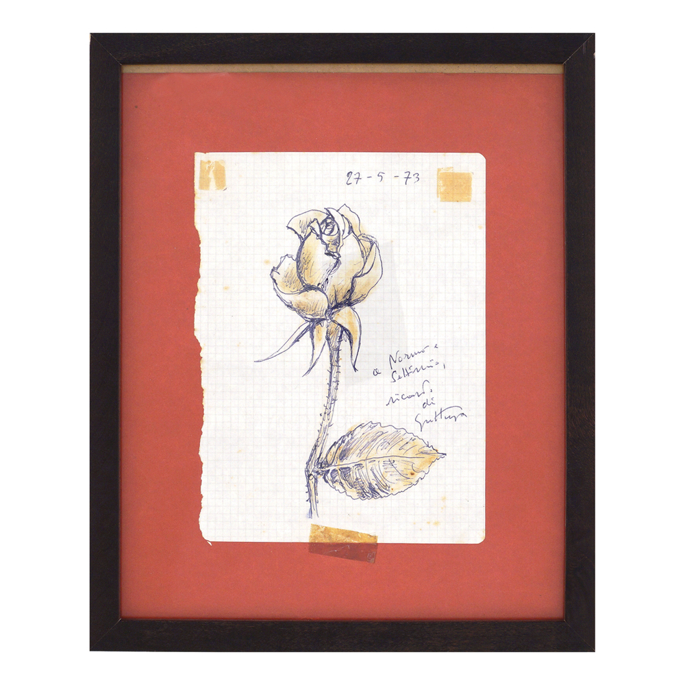 Renato Guttuso Bagheria 1911 - Roma 1987 20,5x15,5 cm. "Rosa", anno 1973, tecnica penna biro, inchiostro su foglio, firmata con dedica in basso a destra, entro cornice.