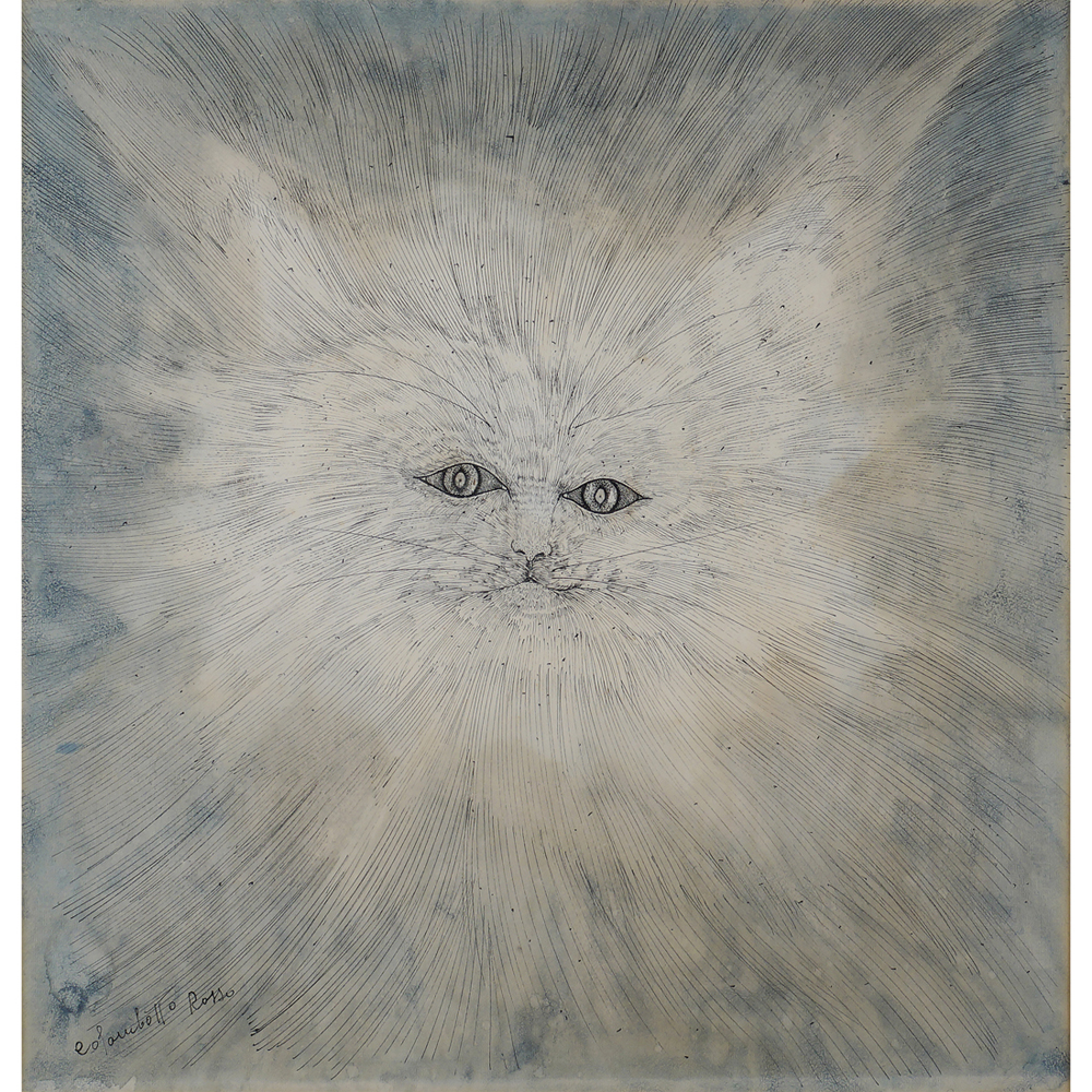 Enrico Colombotto Rosso Torino 1925 - Casale Monferrato 2013 50x50 cm. "Gatto", tecnica mista su carta, firmata in basso a sinistra, entro cornice