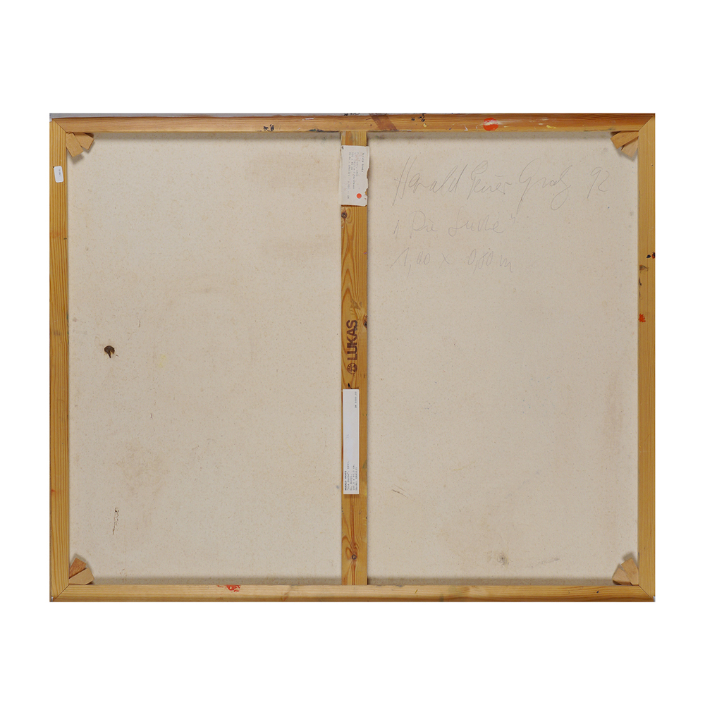 Harald Reiner Gratz Germania 1962 100x80 cm. "Die suche", olio e acrilico su tela, anno 1992, firma, anno e titolo al verso sulla tela, entro cornice