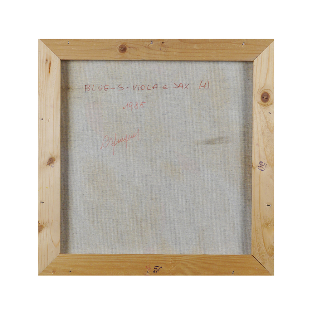 Renato Spagnoli Livorno 1928 50x50 cm. "Blu viola and sax", 1985, olio su tela, firmato e datato sul retro, entro cornice