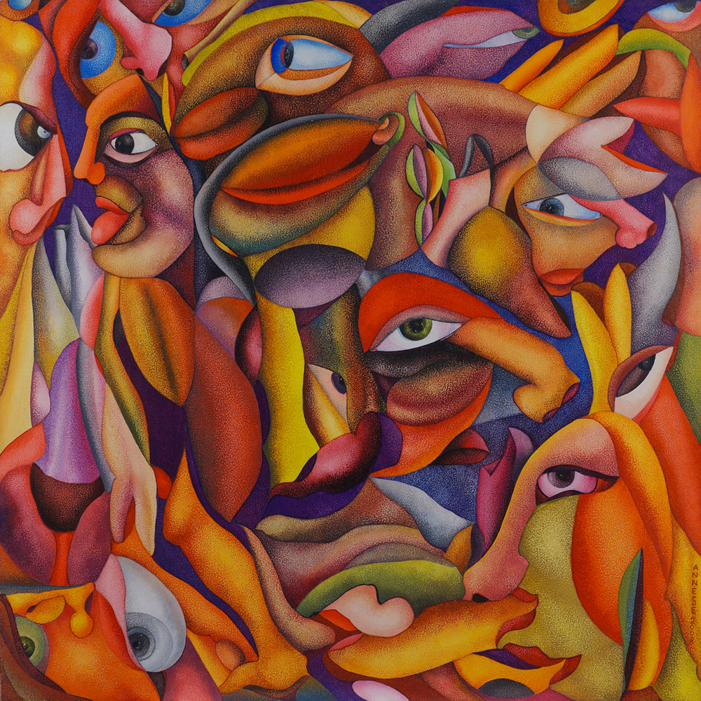 Giuseppe Annese Roma 1938 80x80 cm. "Senza titolo", tecnica mista su tavola,...