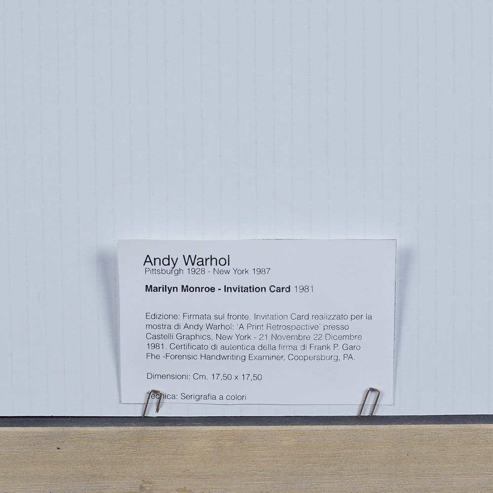 Invitation card realizzato per la mostra di Andy Warhol " A Print Retrospective 1963 - 1981" presso Castelli Graphics, New York, 21 novembre - 22 dicembre 1981.