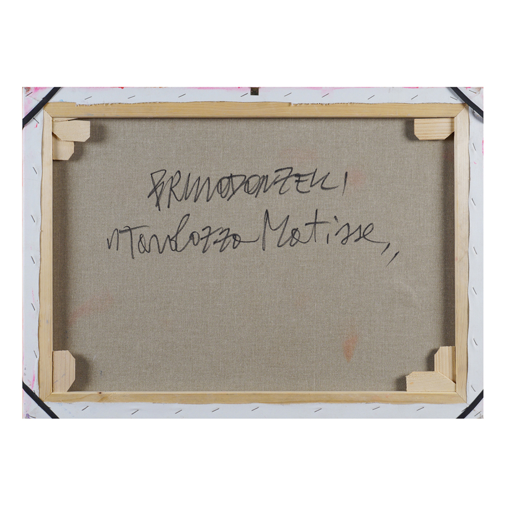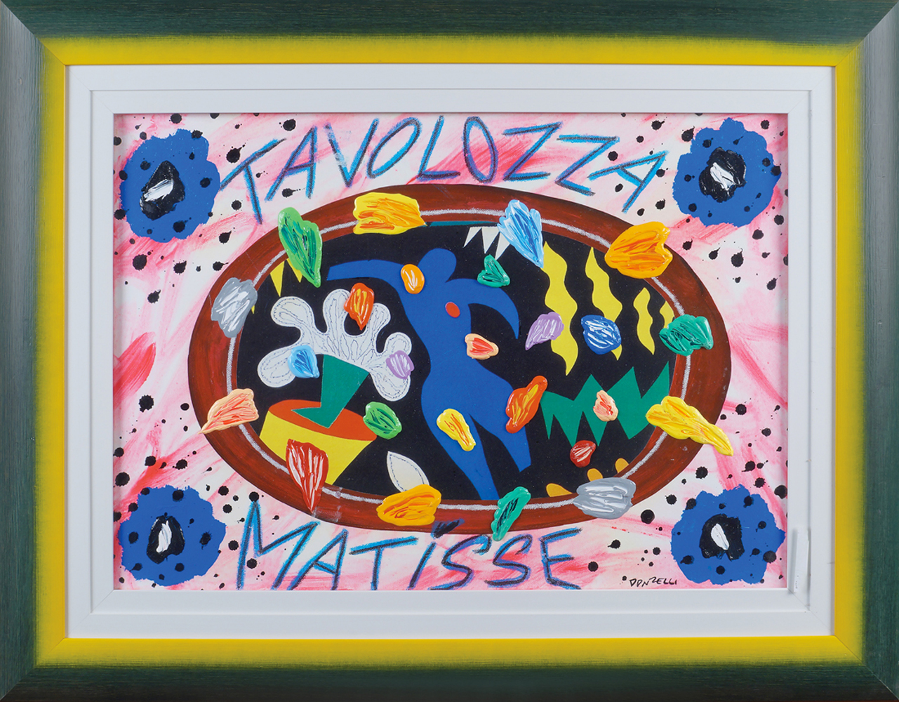 "Tavolozza Matisse", olio su tela, firmato in basso a destra, entro cornice. Titolo e firma la verso sulla tela. Dichiarazione d'autenticità dell'artista su foto