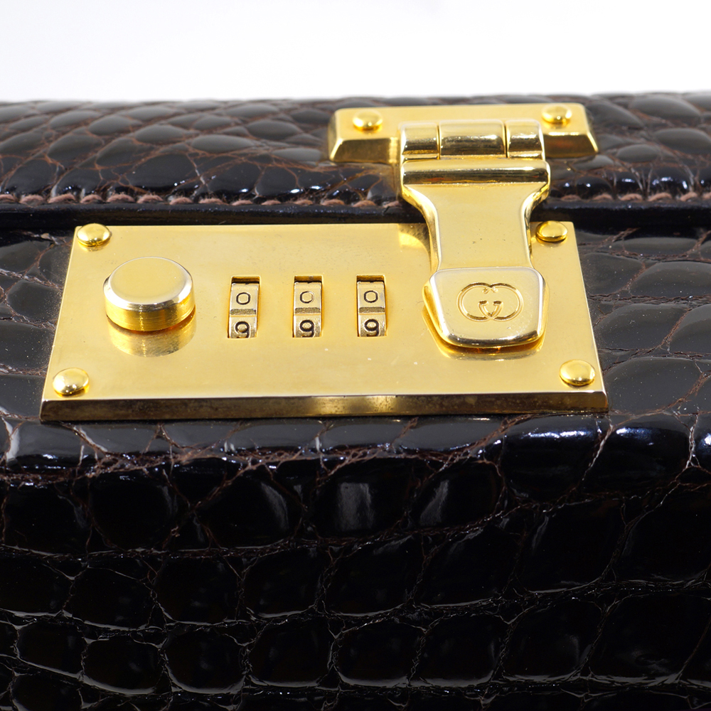 Gucci valigietta 24 ore in pelle 36x46x8 cm. interno con tre tasche in pelle, chiusure in metallo dorato con inciso logo
