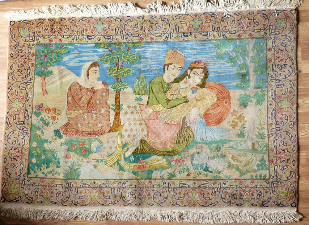 TABRIZ, Tappeto figurato Tabriz Iran 1940 ca. cm 100x152
