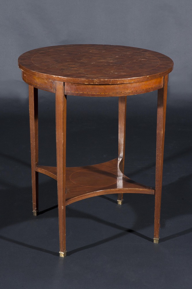 TAVOLO DA CENTRO, Tavolo da centro con piano tondo lavorazione a marquetterie Francia fine del XIX sec.