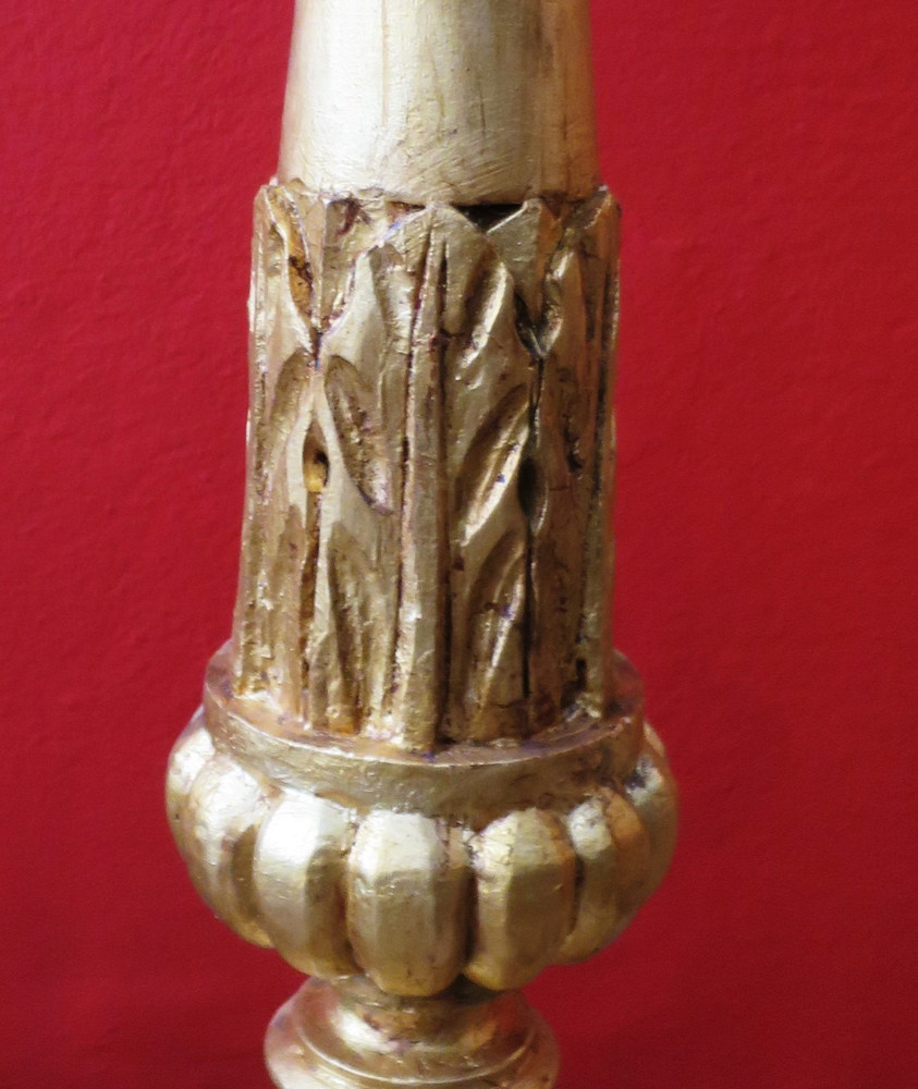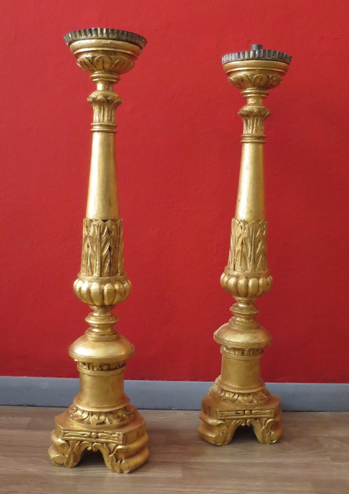 COPPIA CANDELIERI, Coppia di candelieri in legno scolpito e dorato