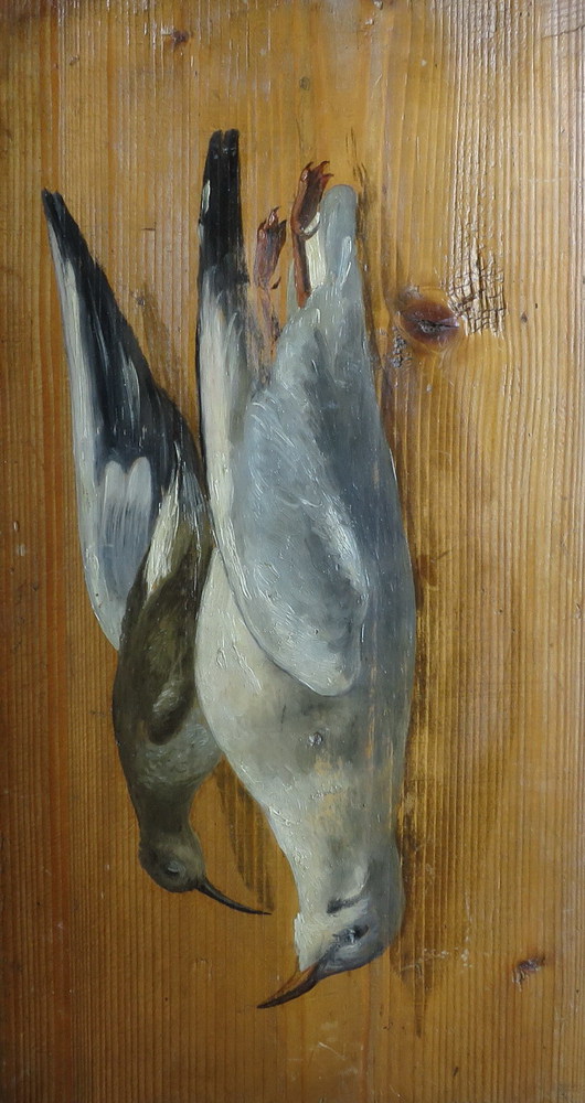 OTTO “NATURE MORTE”, Otto oli su tavola raffiguranti "Natura morta di cacciagione" cm 22x40 e 20x34