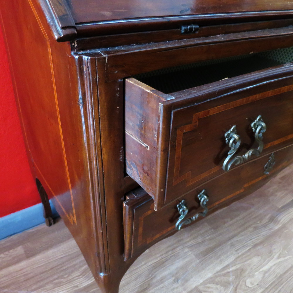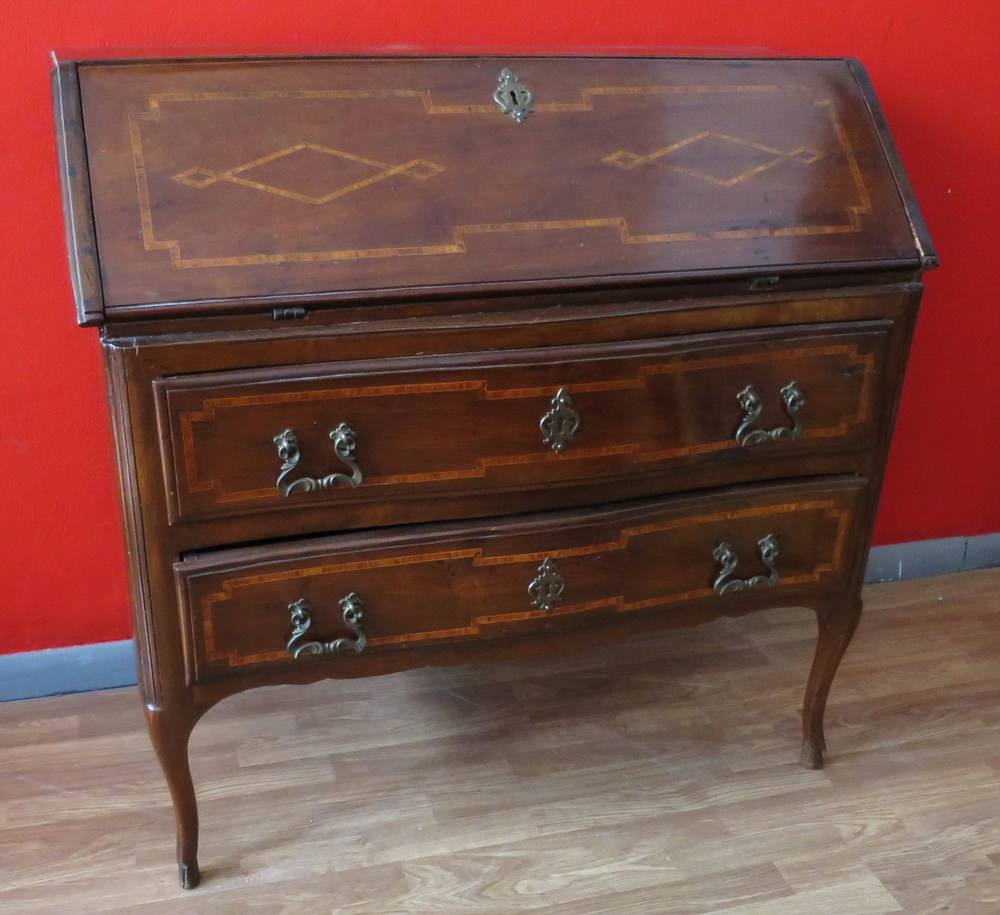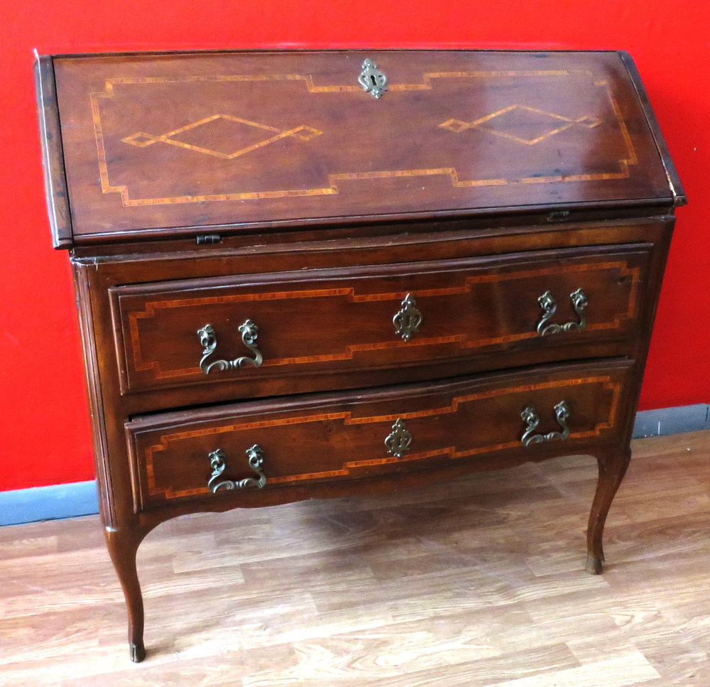 RIBALTA, Ribalta in noce intarsiata a decori geometrici Lombardia XIX sec.