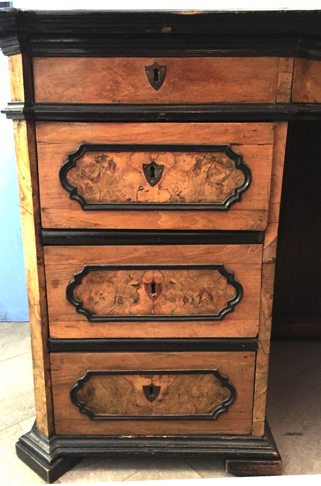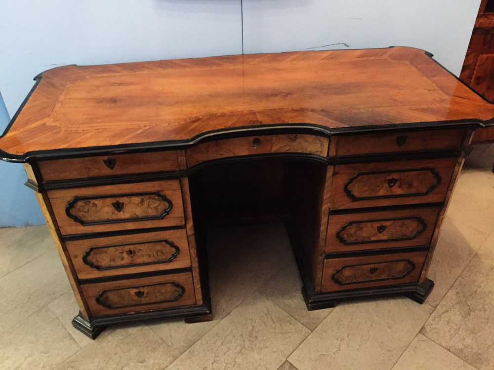 Lotto 73 | SCRIVANIA, Scrivania lastronata in legno di noce con profili ebanizzati....
