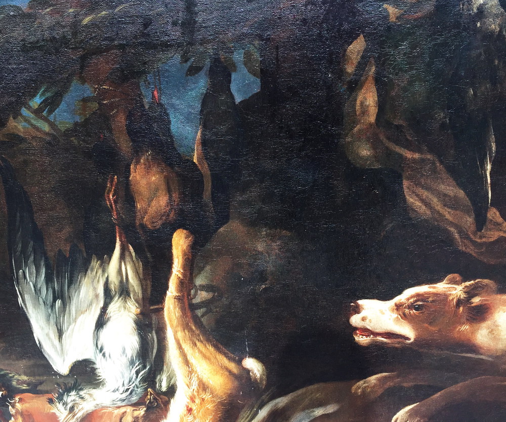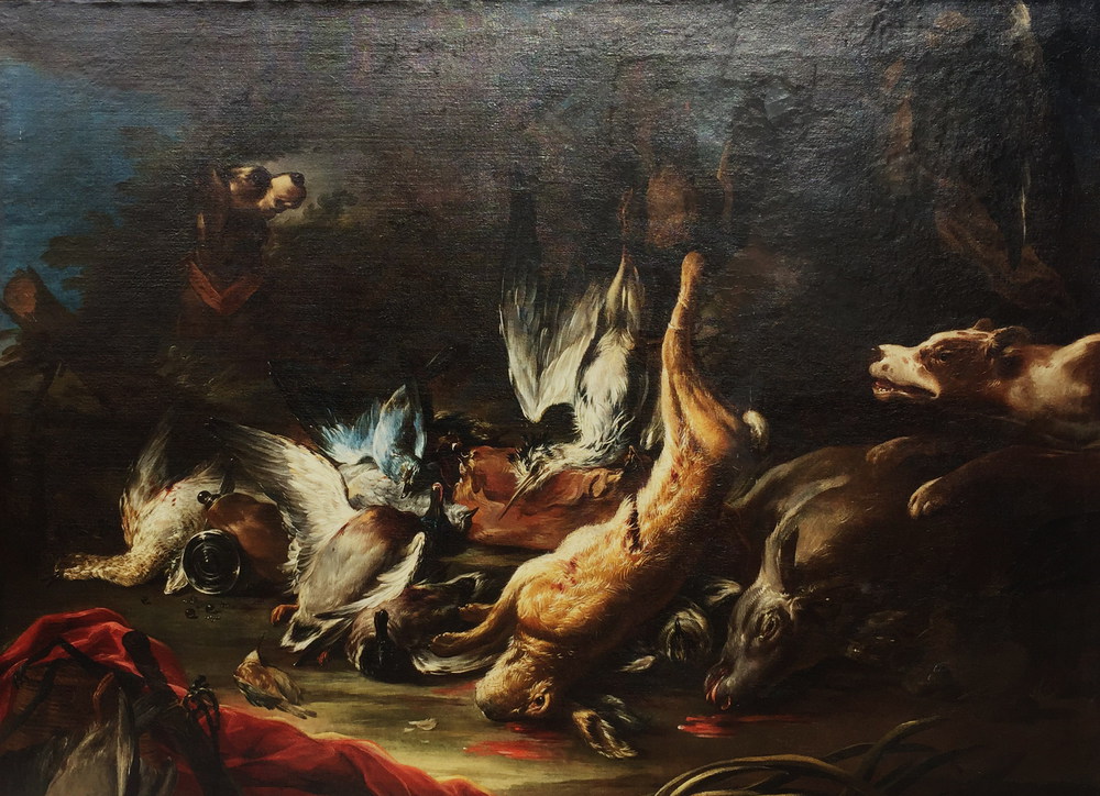 CUSATI GAETANO, Dipinto olio su tela "Natura morta di cacciagione" firmato in basso a destra Gaetano Cusati Napoli seconda metà XVII sec. cm 130x179