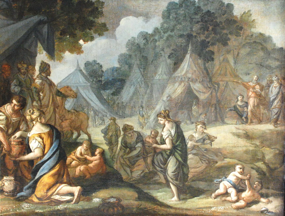 “VERSO LA TERRA PROMESSA” , Dipinto olio su tela raffigurante "Verso la Terra promessa" Veneto Inizi XVIII sec. cm 84x65