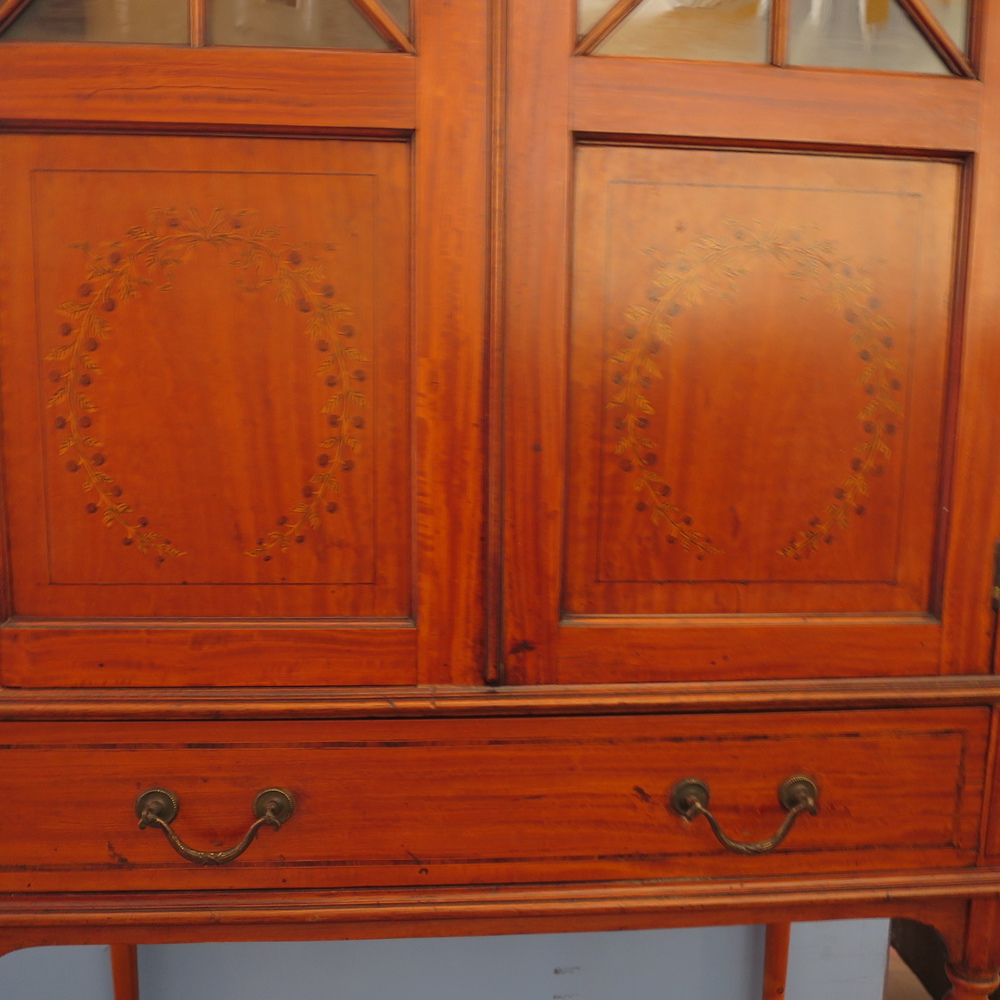 Lotto 90 | Cabinet vetrina in satinwood intarsiato a motivi floreali con cassetto....