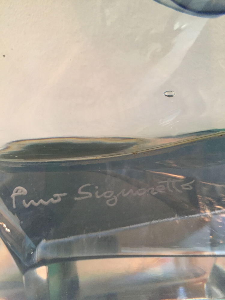 Vetro “Pesce” firmato Pino Signoretto cm 81x46 Leggero difetto sulla base
