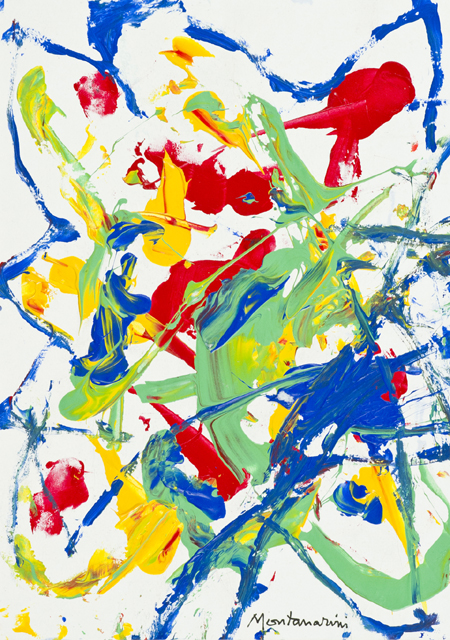 Luigi Montanarini Firenze 1906 - 1998 Composizione astratta, anni '70 Tecnica mista su carta applicata su cartoncino, cm. 30x21 Firmato in basso a destra.