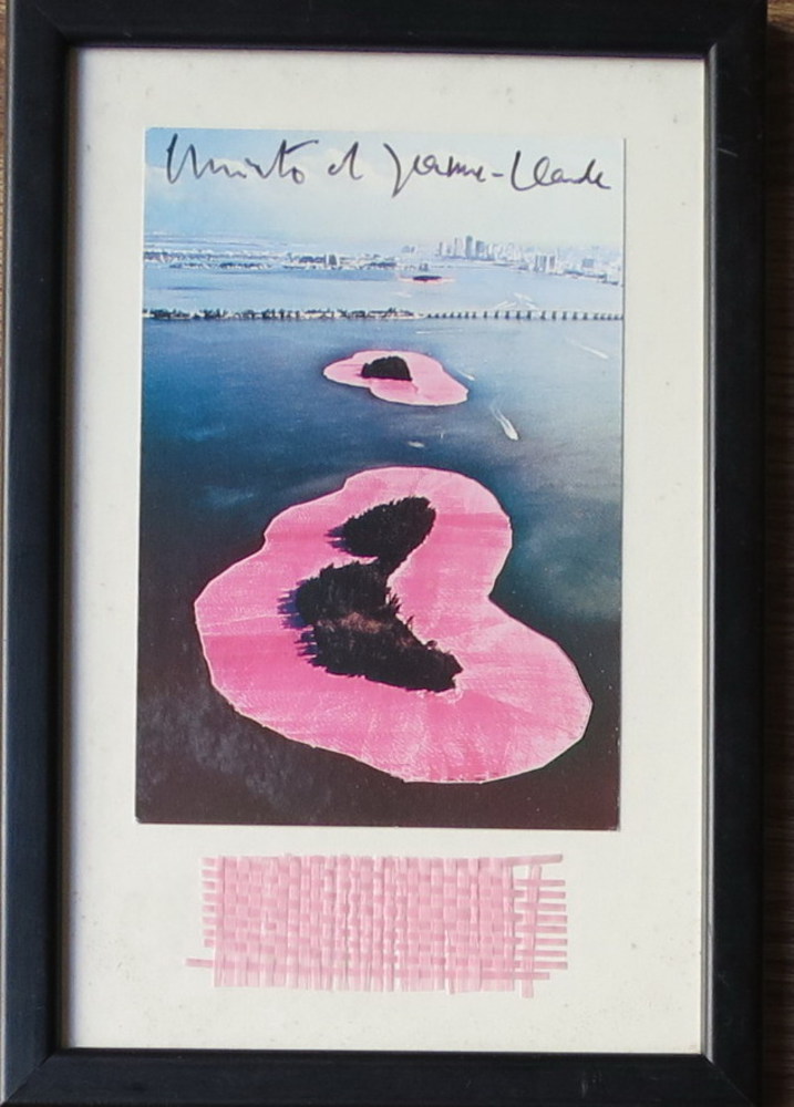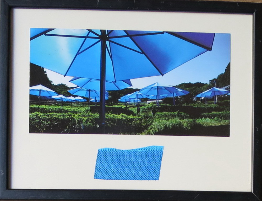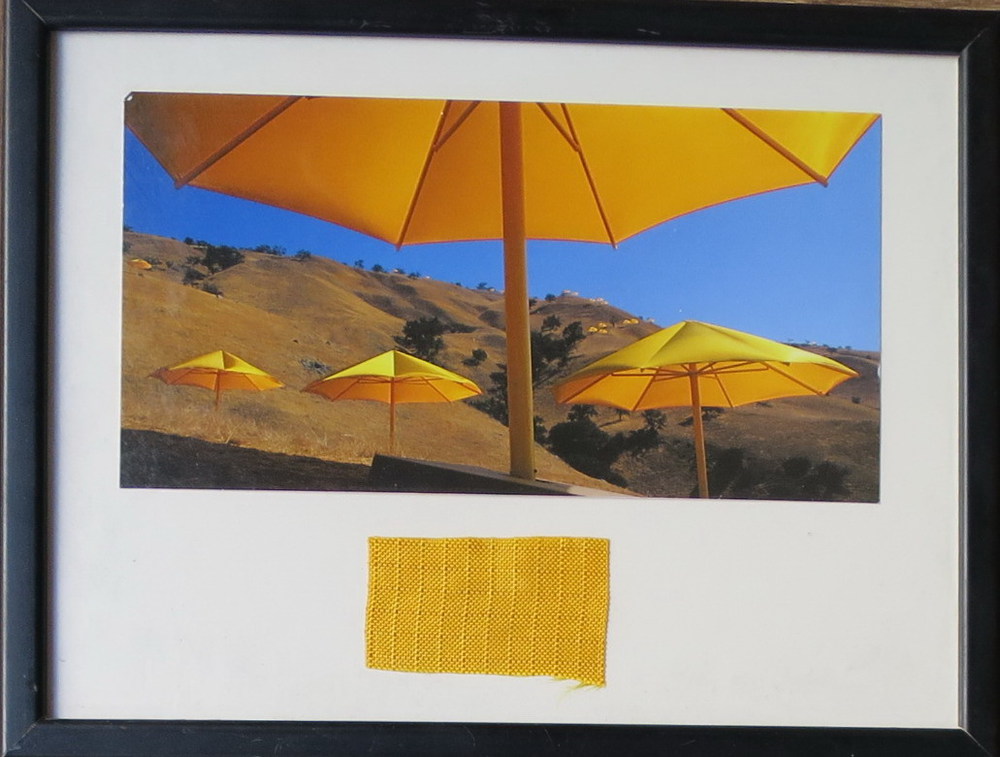 CHRISTO, Christo 3 foto firmate con campione tessuto cm 22x14 e 27,5x21