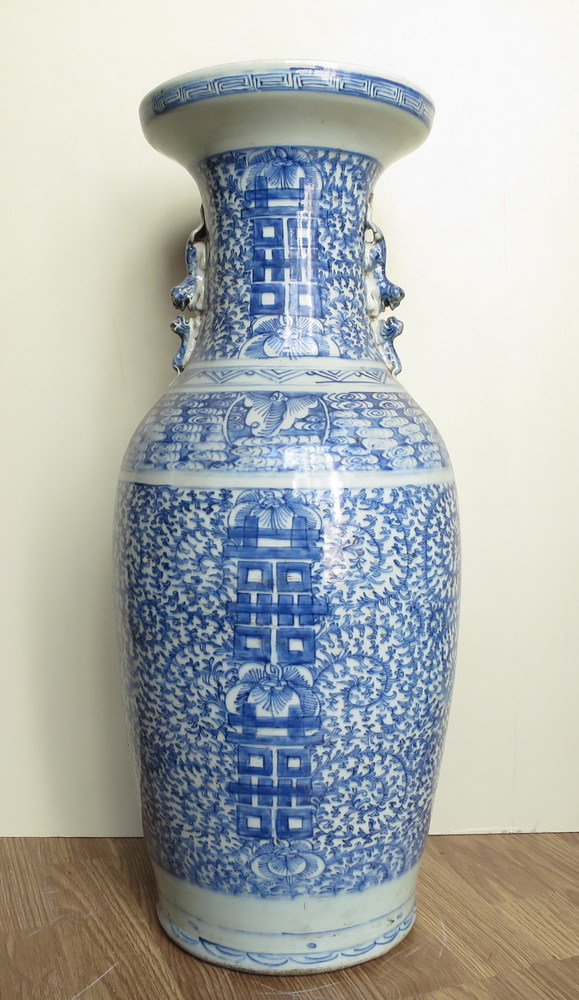 VASO, Vaso bianco blu Cina XX sec. cm 60