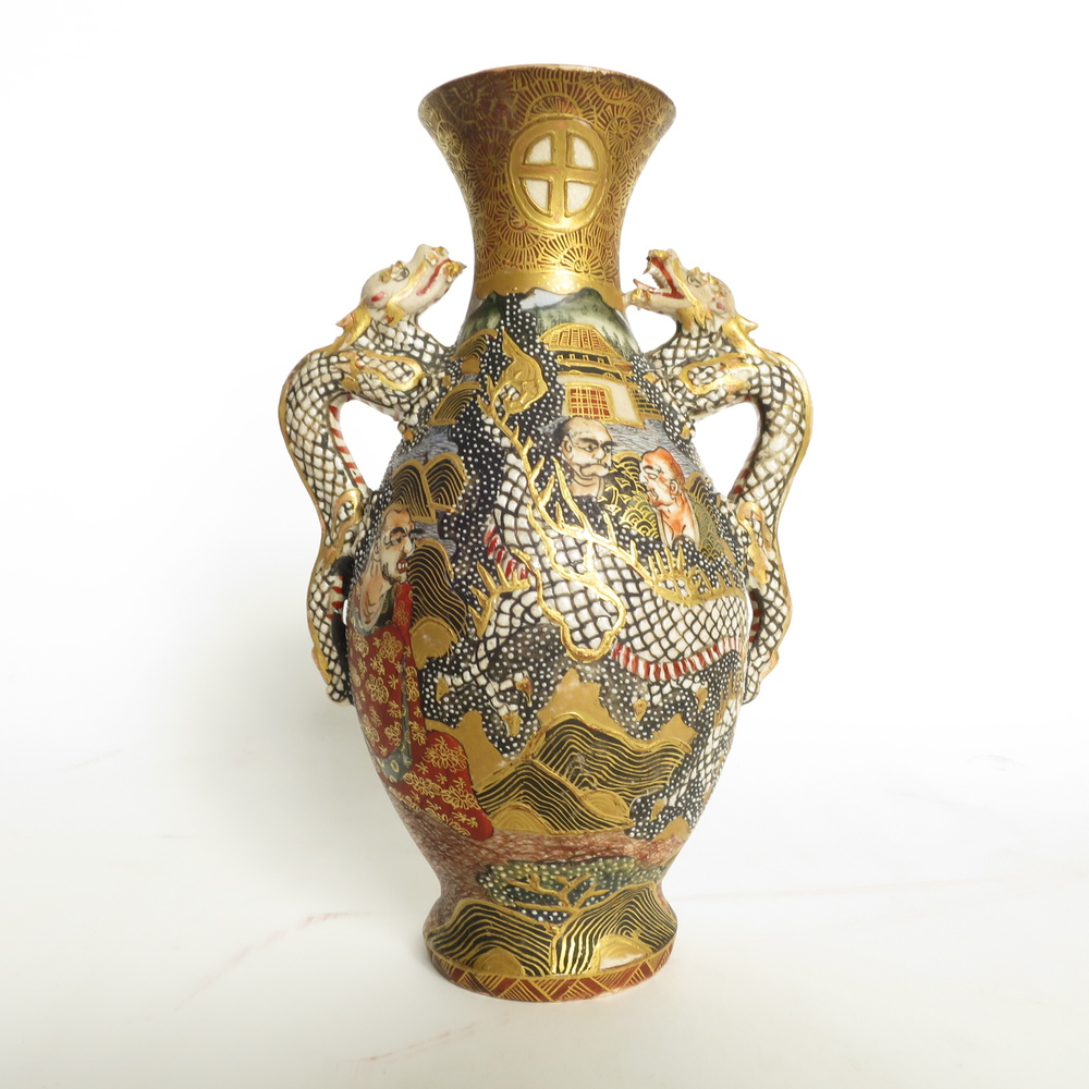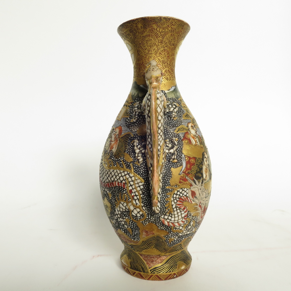 VASO SATSUMA, Vaso satsuma con decoro in smalto a rilievo manici con draghi....