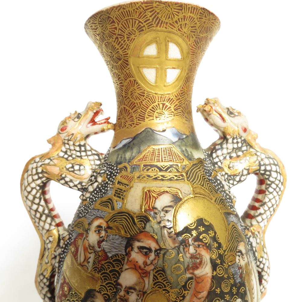 VASO SATSUMA, Vaso satsuma con decoro in smalto a rilievo manici con draghi. Giappone Meiji h. cm 14,5