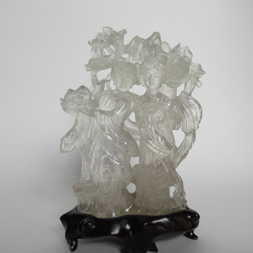 SCULTURA, Gruppo in cristallo con base in legno Cina XX sec. h. cm 18