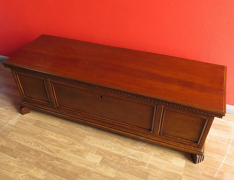 CASSAPANCA, Cassapanca in noce fronte riquadrato. Lombardia prima metà XVIII sec.