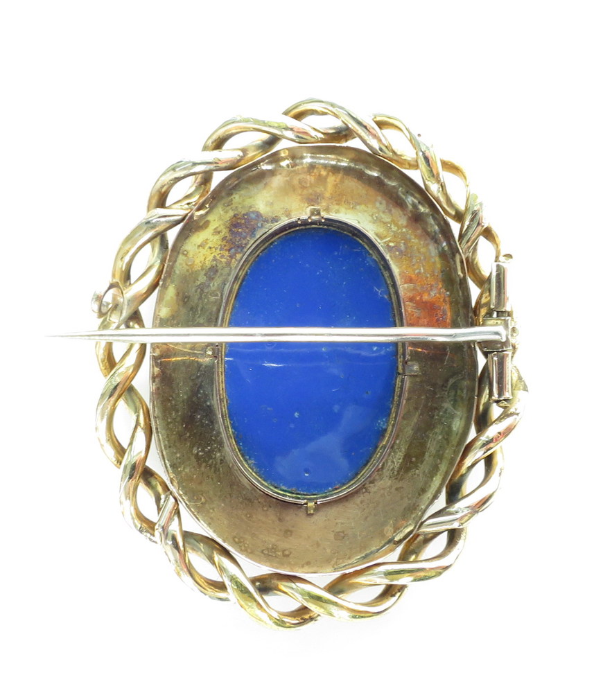 SPILLA, Spilla miniatura in smalto svizzero oro rosa 18 KT metà del XIX sec. gr 12,6.