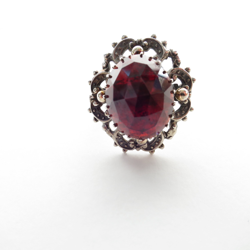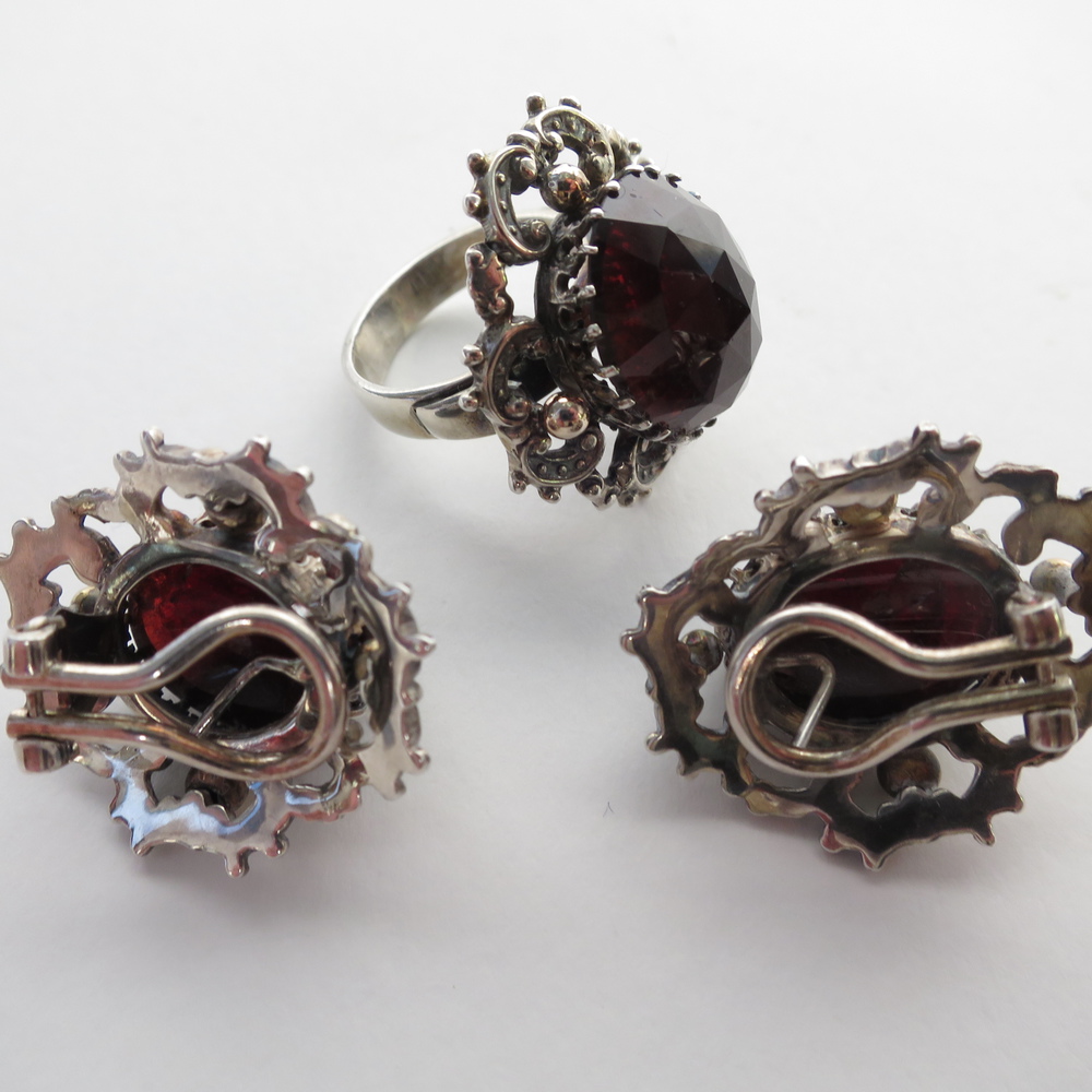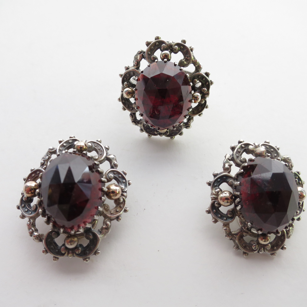 Lotto 226 | SUITE DI ORECCHINI, Suite di orecchini argento/oro rosa granati cabochon...