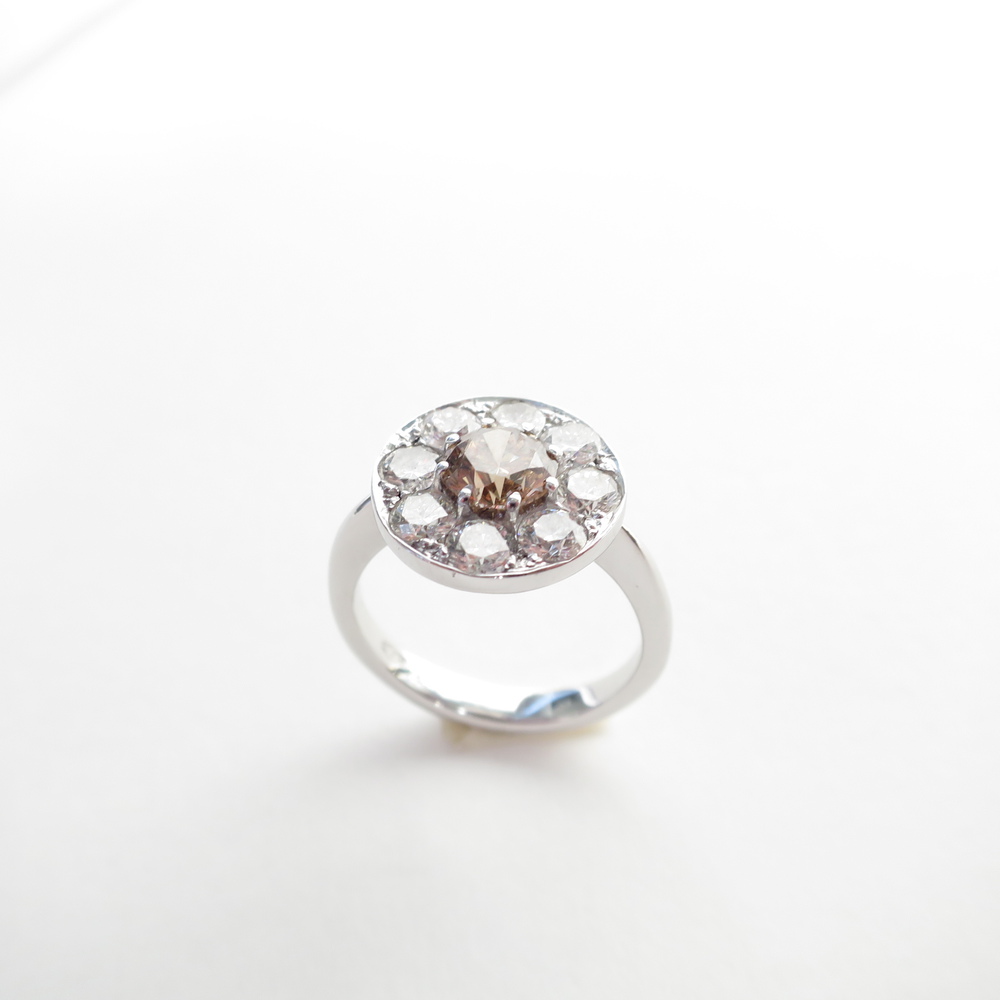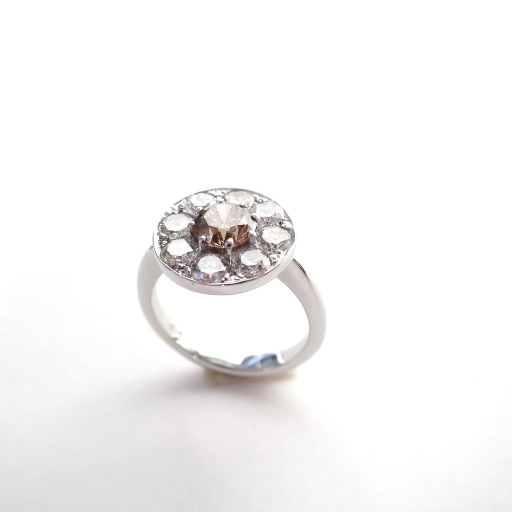 ANELLO, Anello oro bianco 18 KT diamanti bianchi ct 0,90, diamante fancy ct...