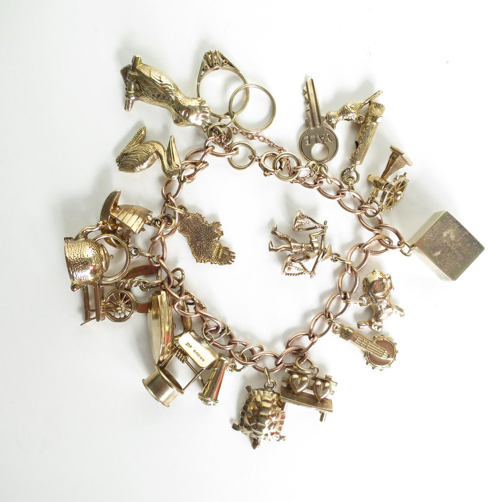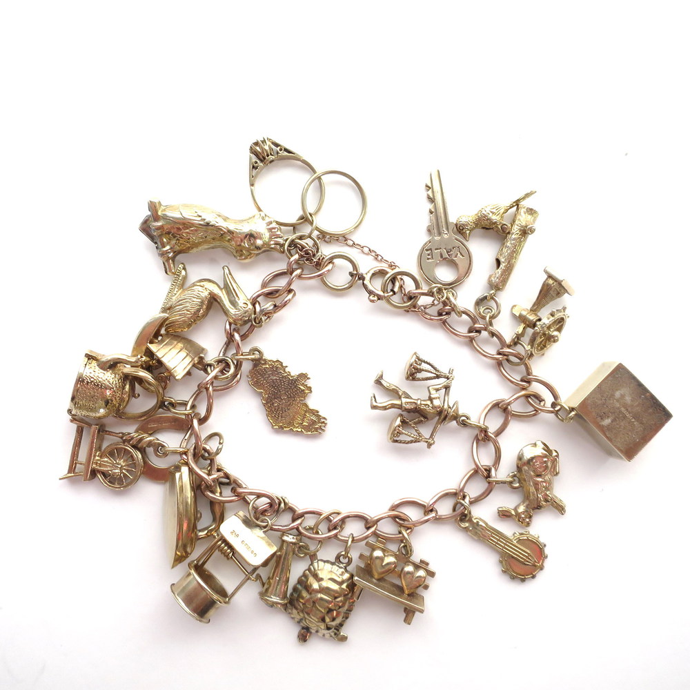 BRACCIALE, Bracciale oro giallo 14 KT charms Inghilterra anno 1940 ca. gr 40,03