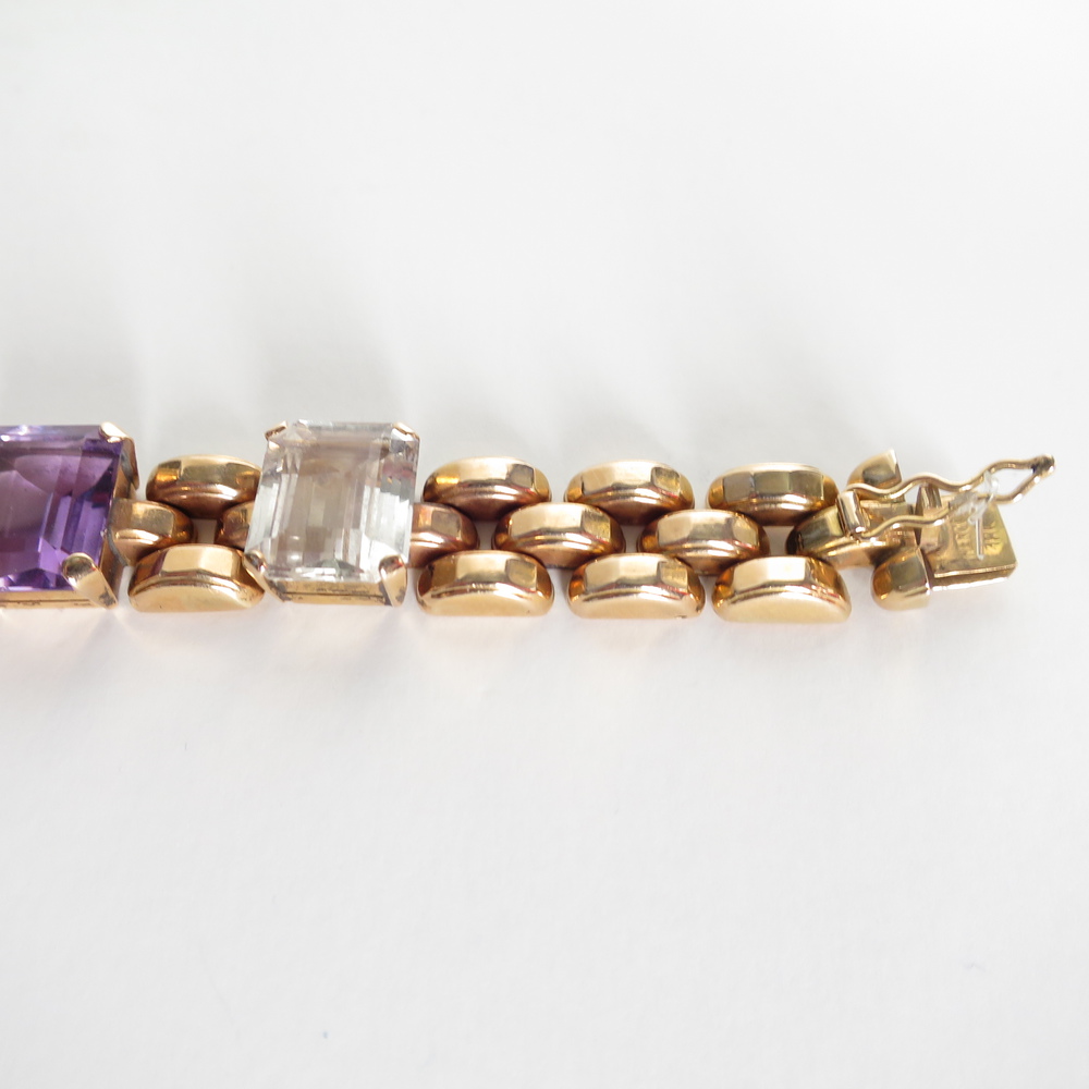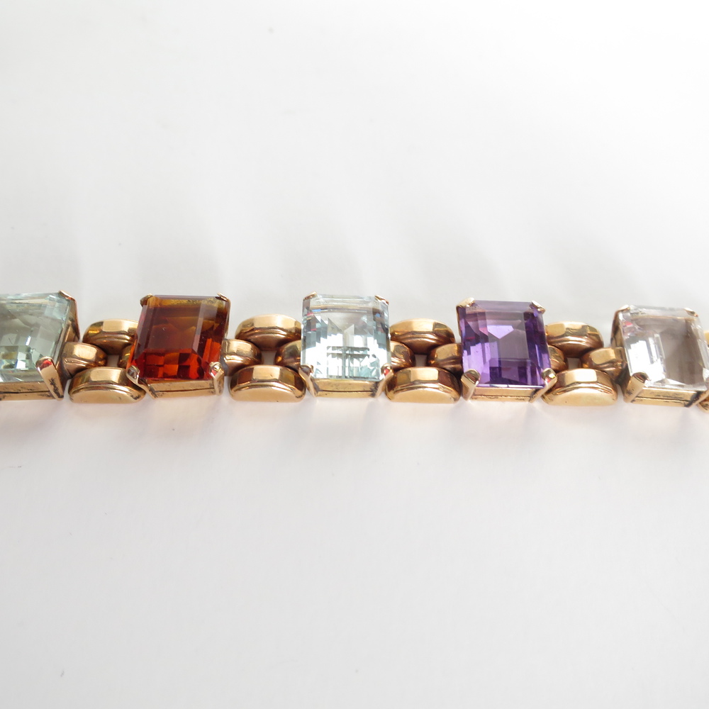 BRACCIALE, Bracciale oro rosa 14 KT pietre semipreziose acquamarina ametista topazio tormaline Inghilterra 1940 ca. gr 31,2