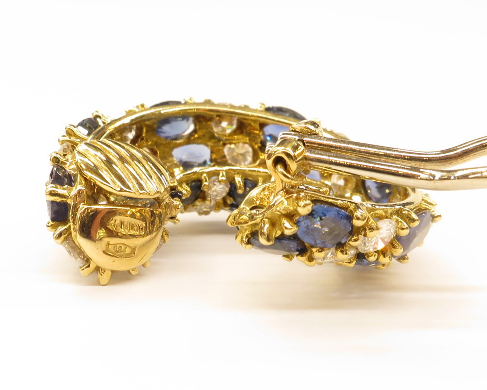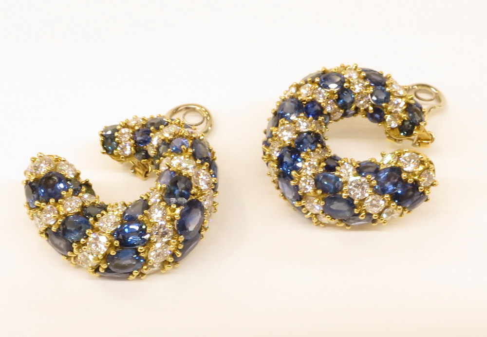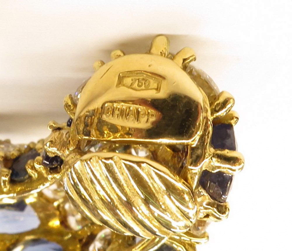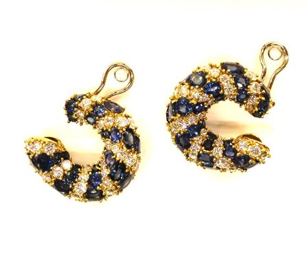 ORECCHINI, Orecchini in oro giallo e bianco. orafo Chiappe Genova. Brillanti ct 8,30, zaffiri ct 8 gr 30,80