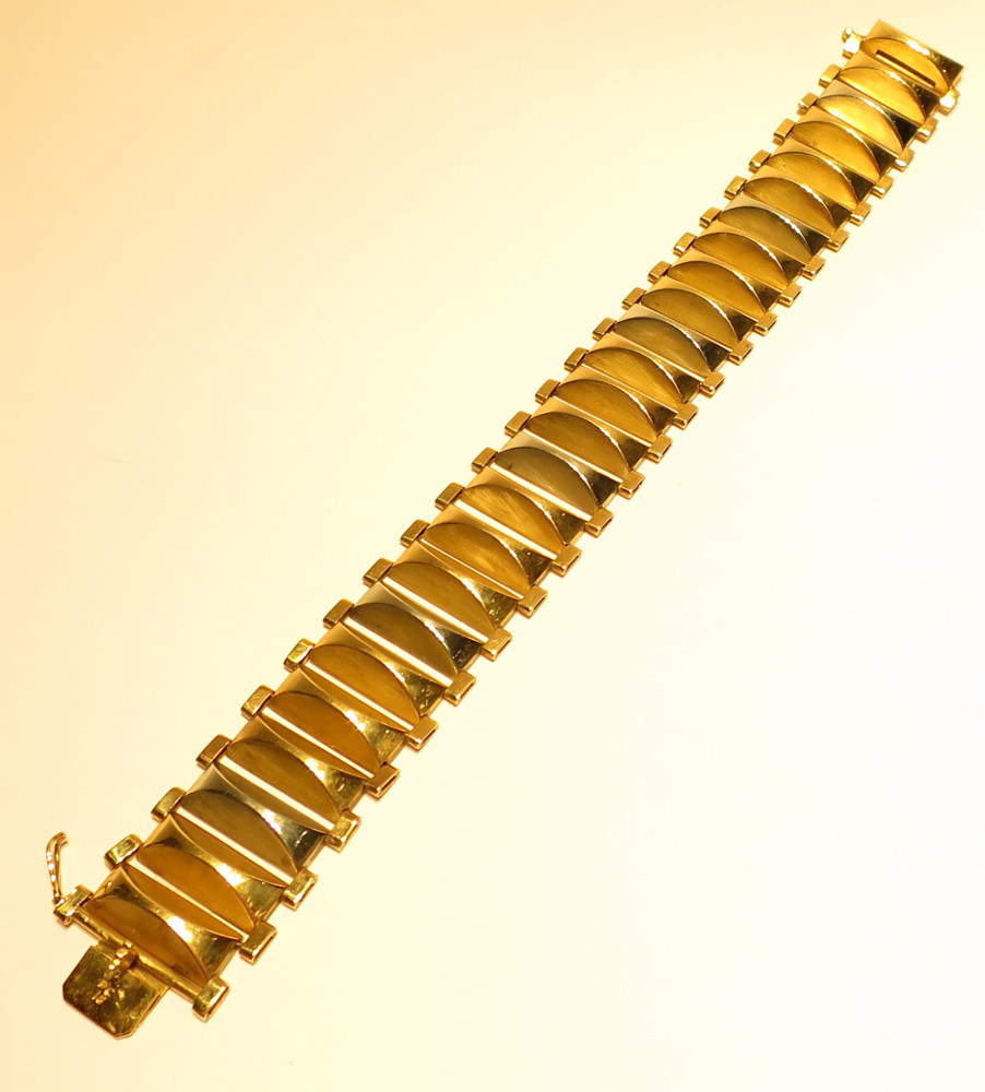 BRACCIALE, Bracciale due colori d'oro a maglia morbida, Anni '40-'50. Peso gr...