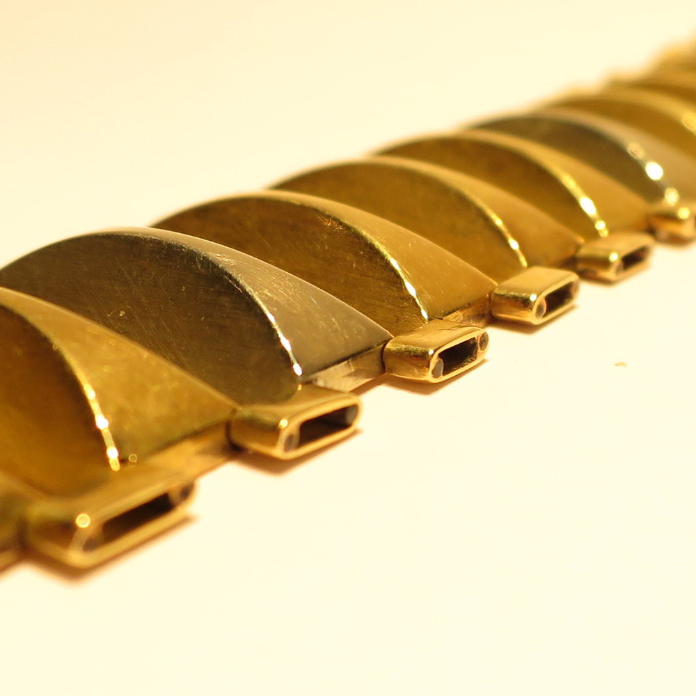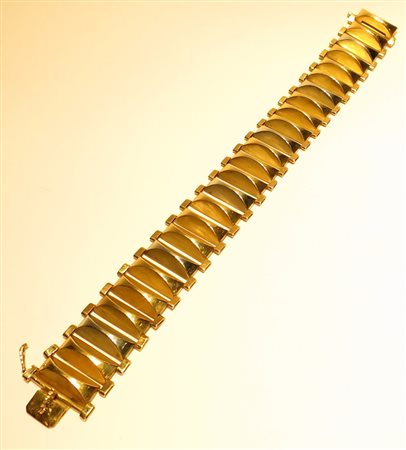 BRACCIALE, Bracciale due colori d'oro a maglia morbida, Anni '40-'50. Peso gr 34,5