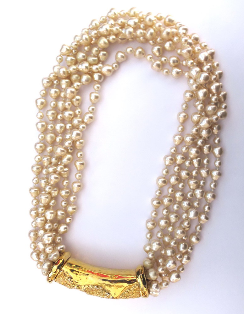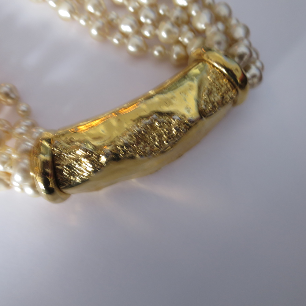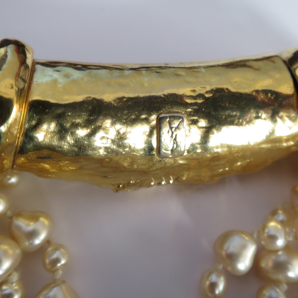 SAINT LAURENT, Collana torchon con perle e fermatura dorata, firmata Y. Saint Laurent