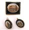 PARURE, Parure spilla e orecchini su ardesia montati in oro con micromosaici rappresentanti il foro, la piramide Gaia e il Pantheon. Roma XIX sec.