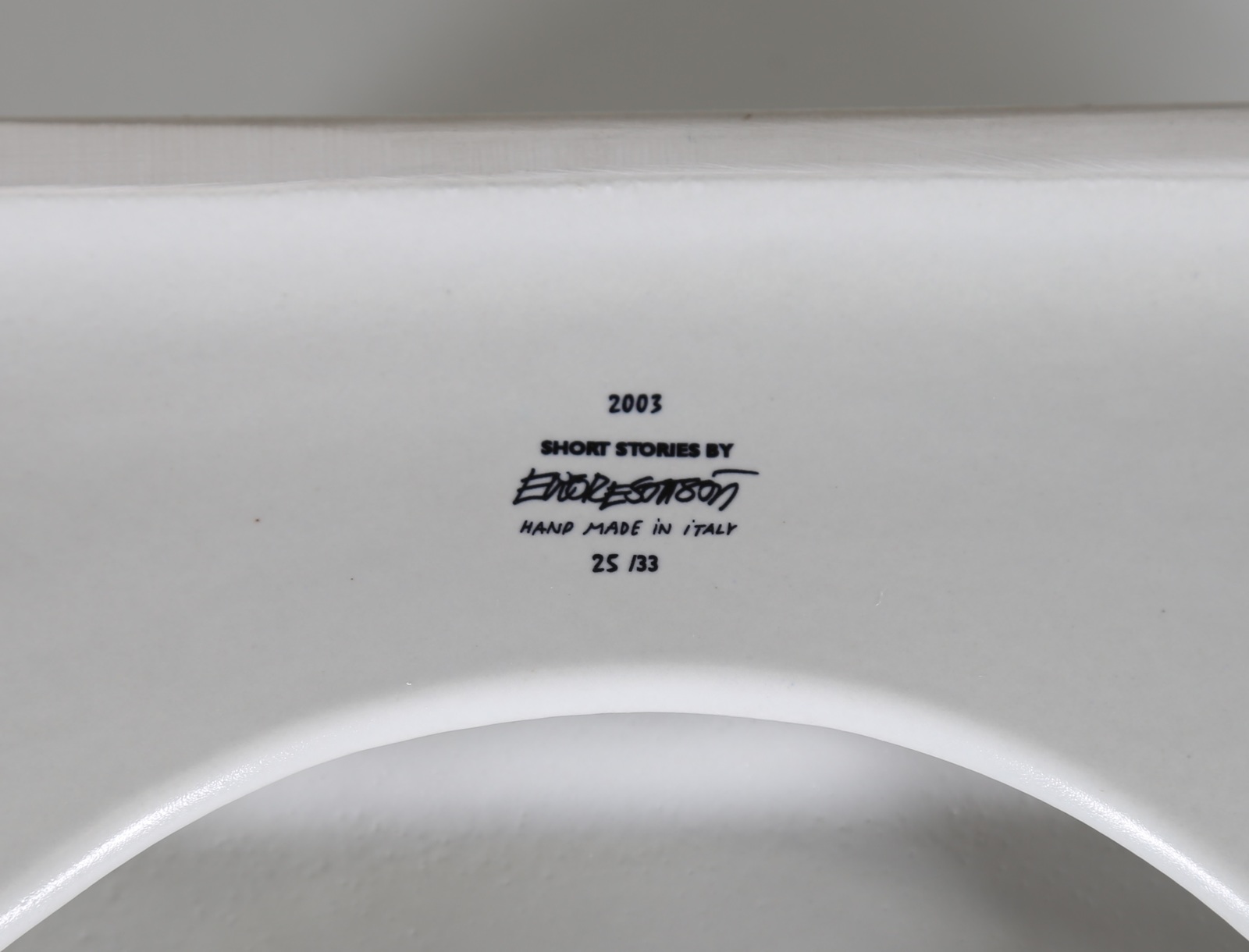 SOTTSASS ETTORE (1917 - 2007) Woodpecker vase ceramic sculpture, limited edition number 25 of 33 of the short stories’ series 2003, which include fourteen ceramic and glass object. There is the brand at base. Literature; S. Campitelli, A. Blessi, E.Sottsass, Short Stories. Ettore Sottsass’s fourteen ceramics and glasses, Livorno 2003.