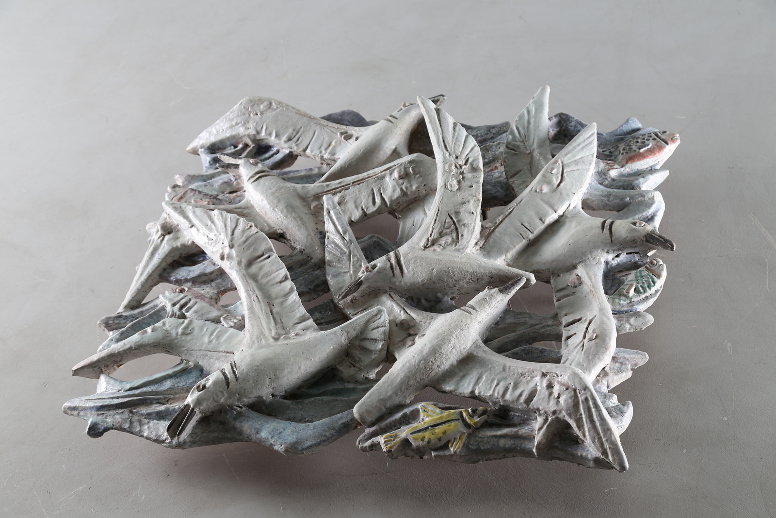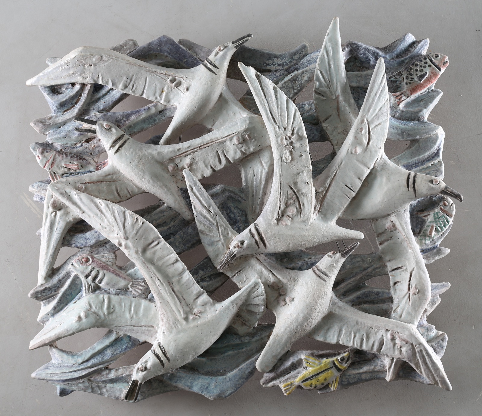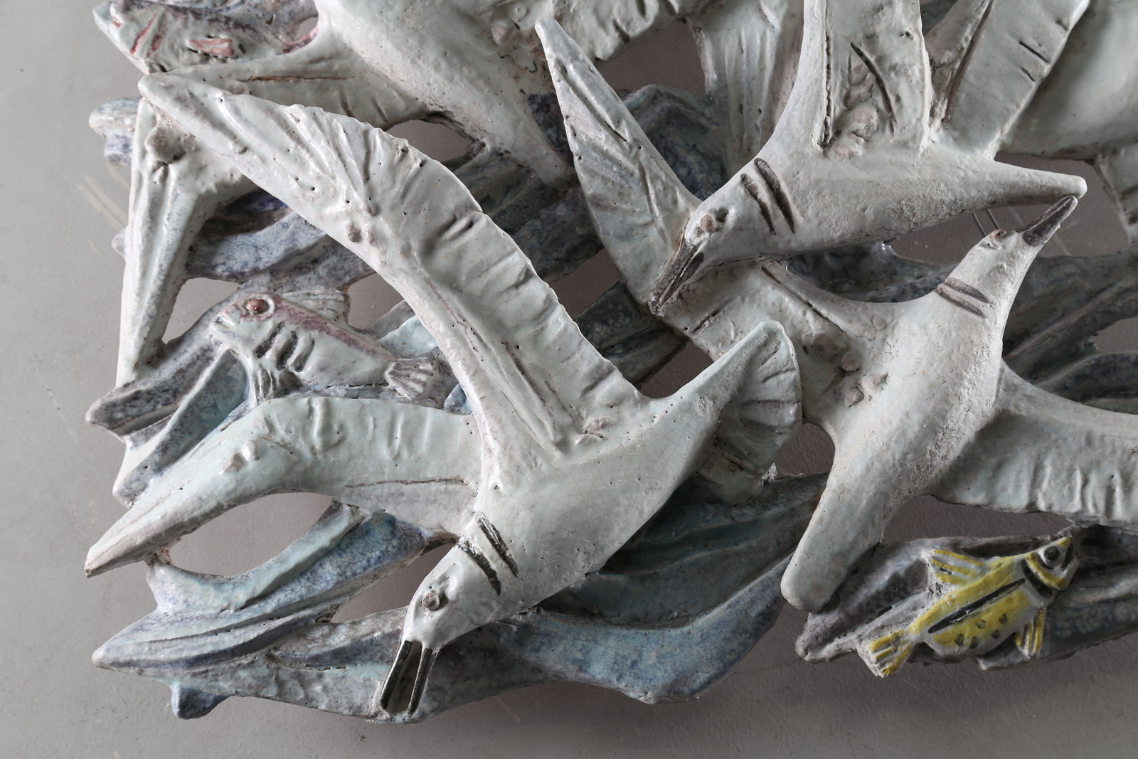 MITRI GIOVAN BATTISTA Scultura in ceramica, Gabbiani e Pesci, anni 50.