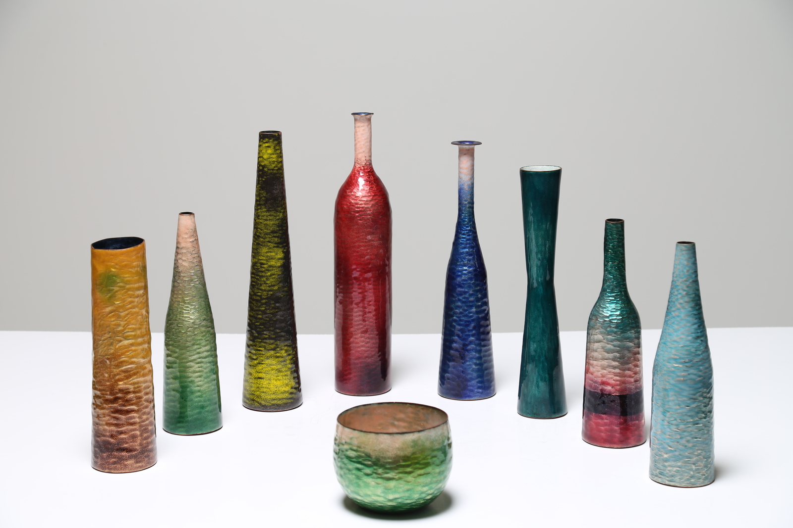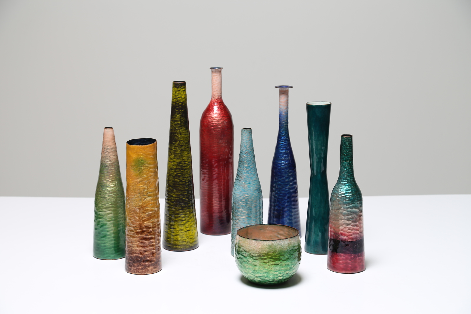 DE POLI PAOLO (1905 - 1996) Tribute to Manhattan, realized in 1967 for his personal exhibition at New York Museum of Contemporary Crafts, consists of nine pieces ( vases, bottles, bowls). Inspiring himself to the skyline in New York, the author considered the work his masterpiece. F. Padova Collection.
