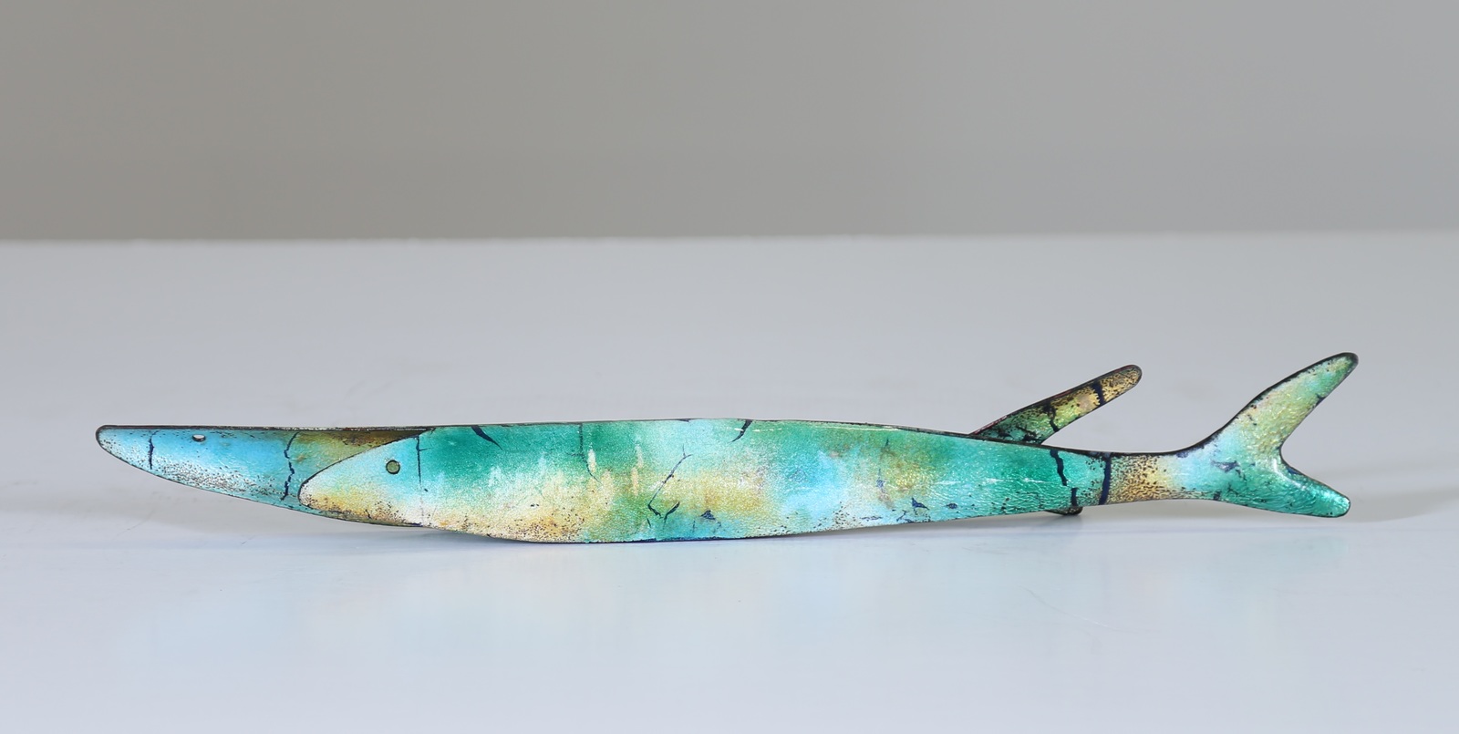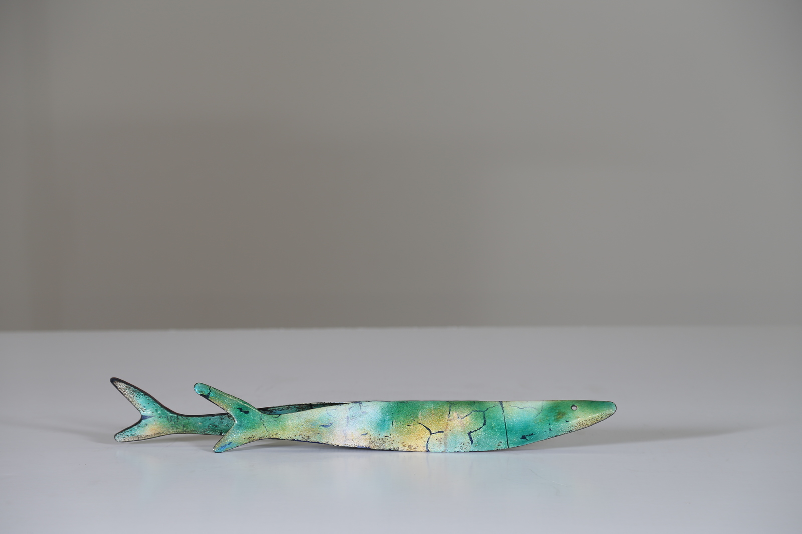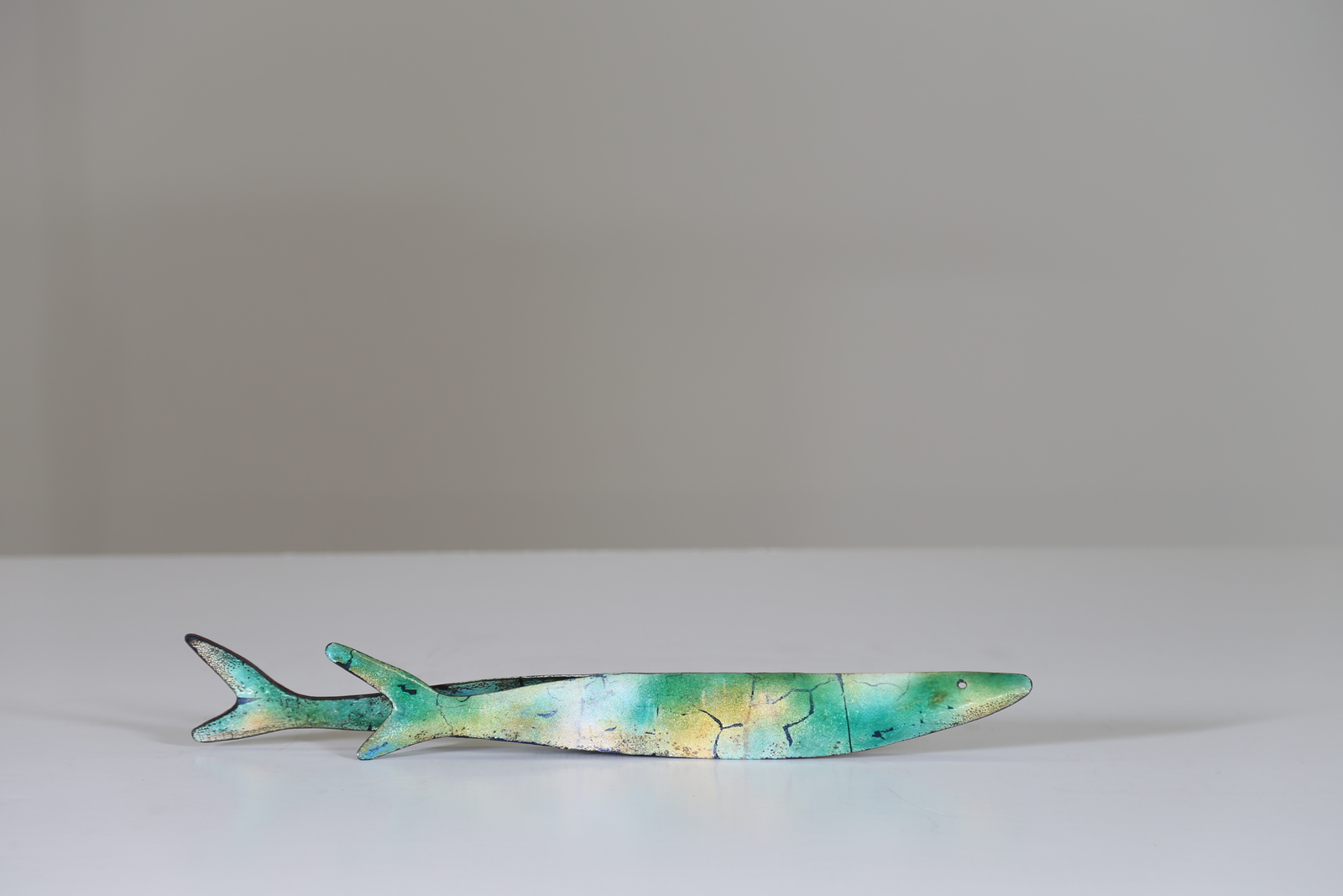 DE POLI PAOLO (1905 - 1996) Enameled copper fish, Smalti De Poli Padova 50’s. Collection F. Padova. Literature; Domus num. 263 october 1951 pag. 15/16; Literature; Domus num. 329 april 1957 pag. 25/26/27.