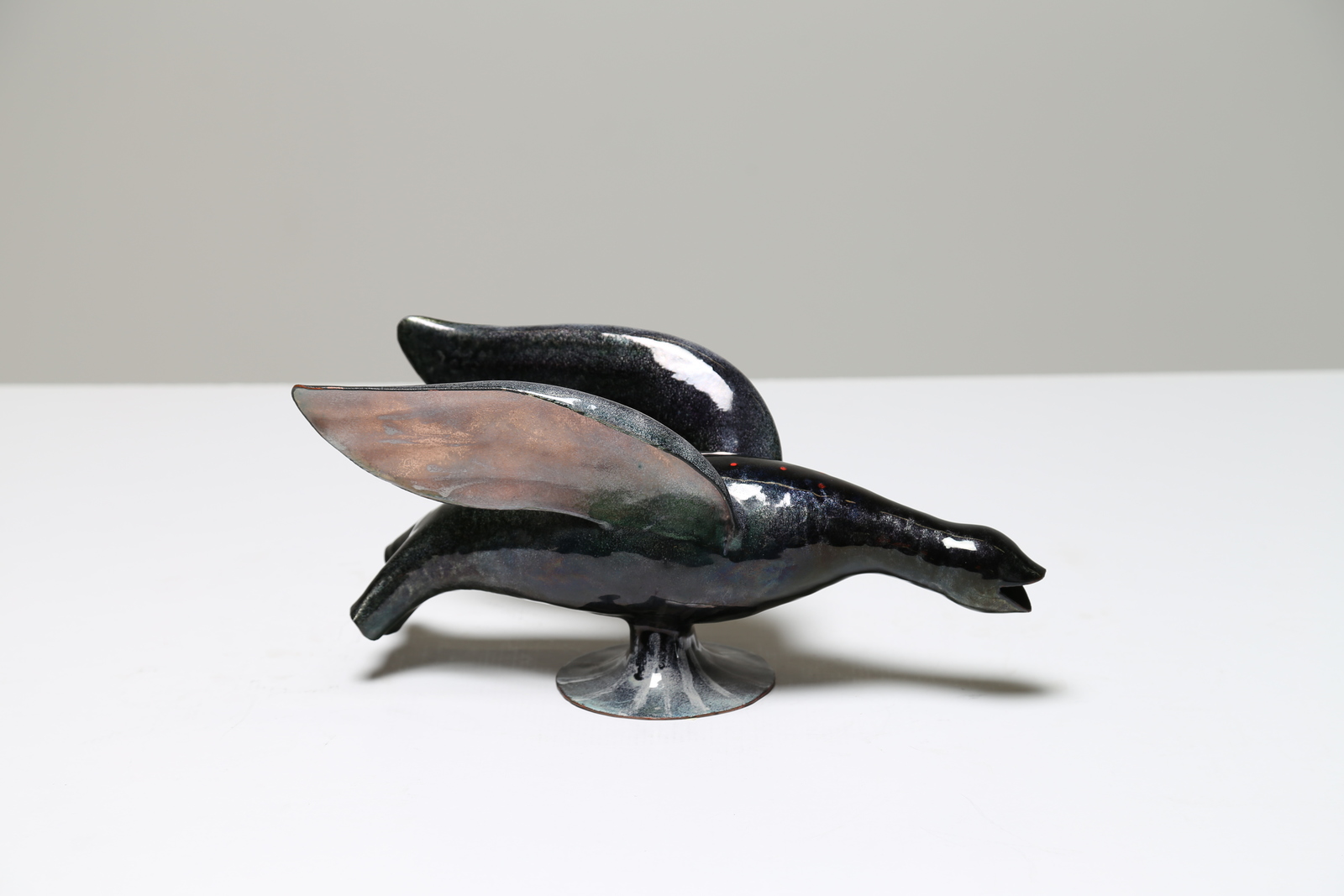DE POLI PAOLO (1905 - 1996) Enameled copper royal mallard, Smalti De Poli Padova 50’s. Collection F. Padova. Literature; Domus num. 263 october 1951 pag. 15/16; Literature; Domus num. 329 april 1957 pag. 25/26/27.