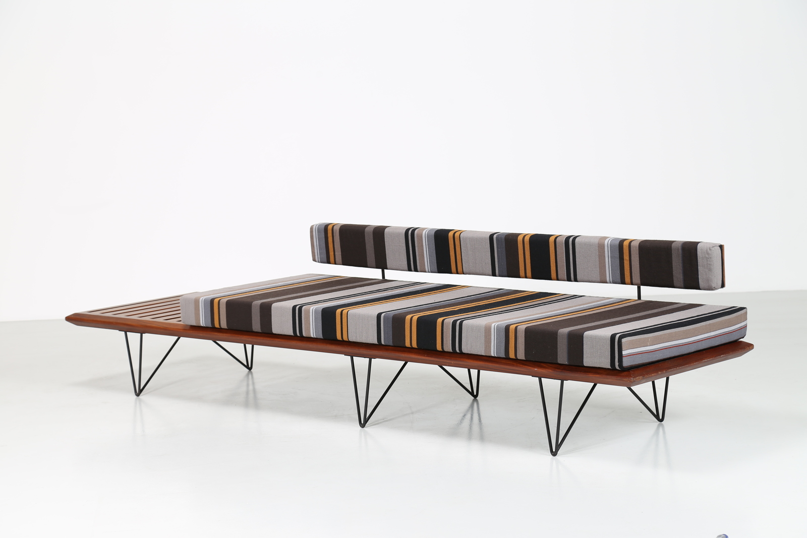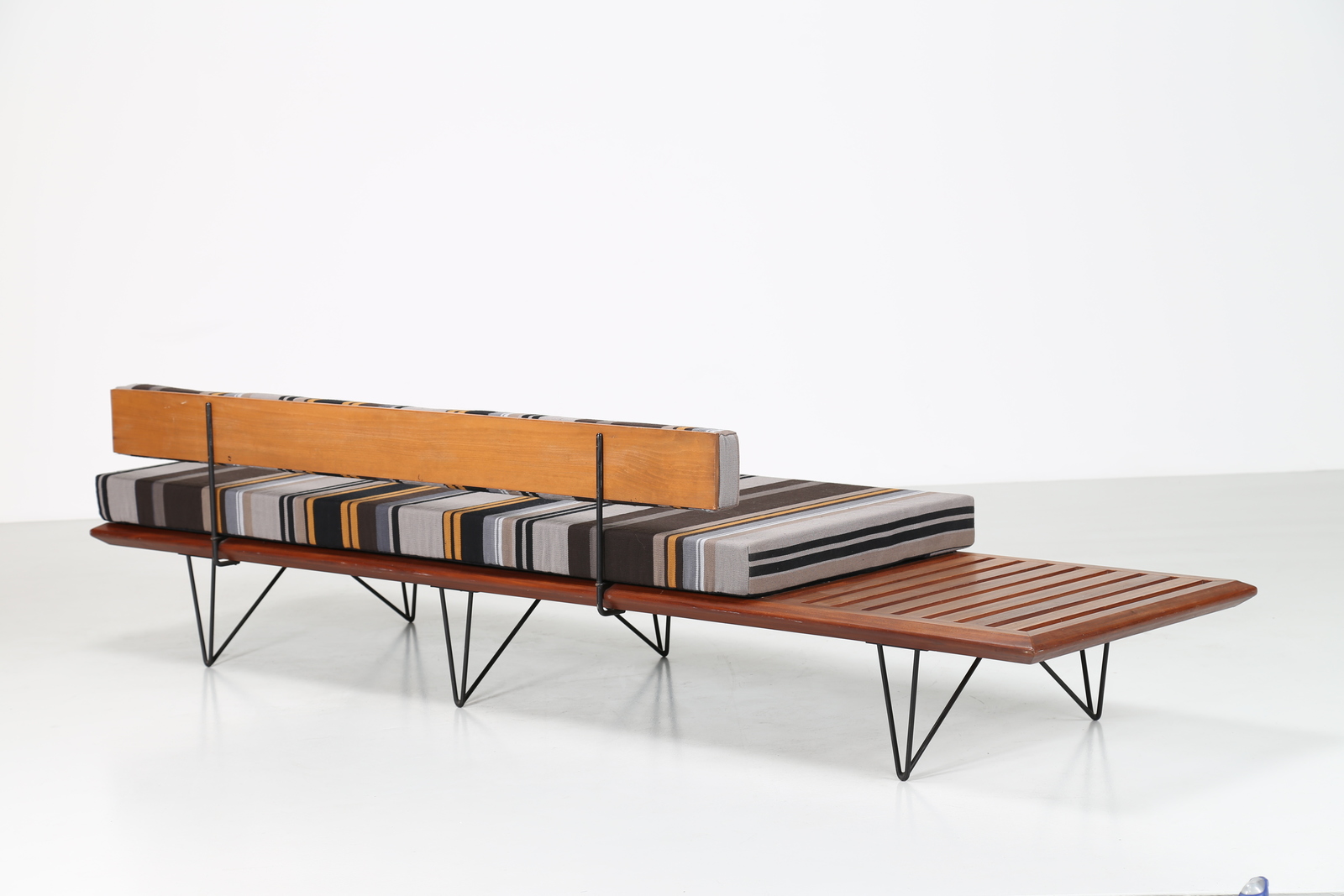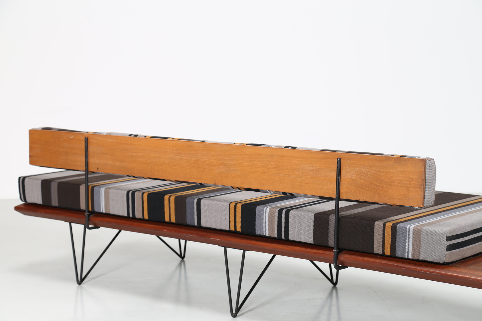 CARLO HAUNER (1927-1997) & MARTIN HESLER (1913-1977) Raro divano in palissandro con gmabe in tondino di ferro e tessuto originale, per Forma Brescia anni 50.