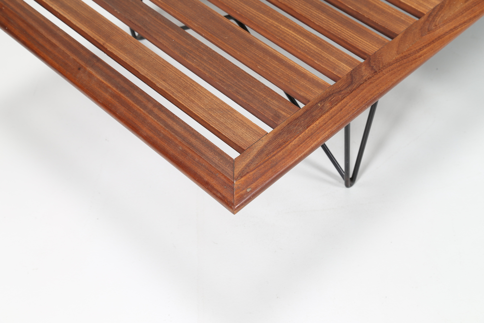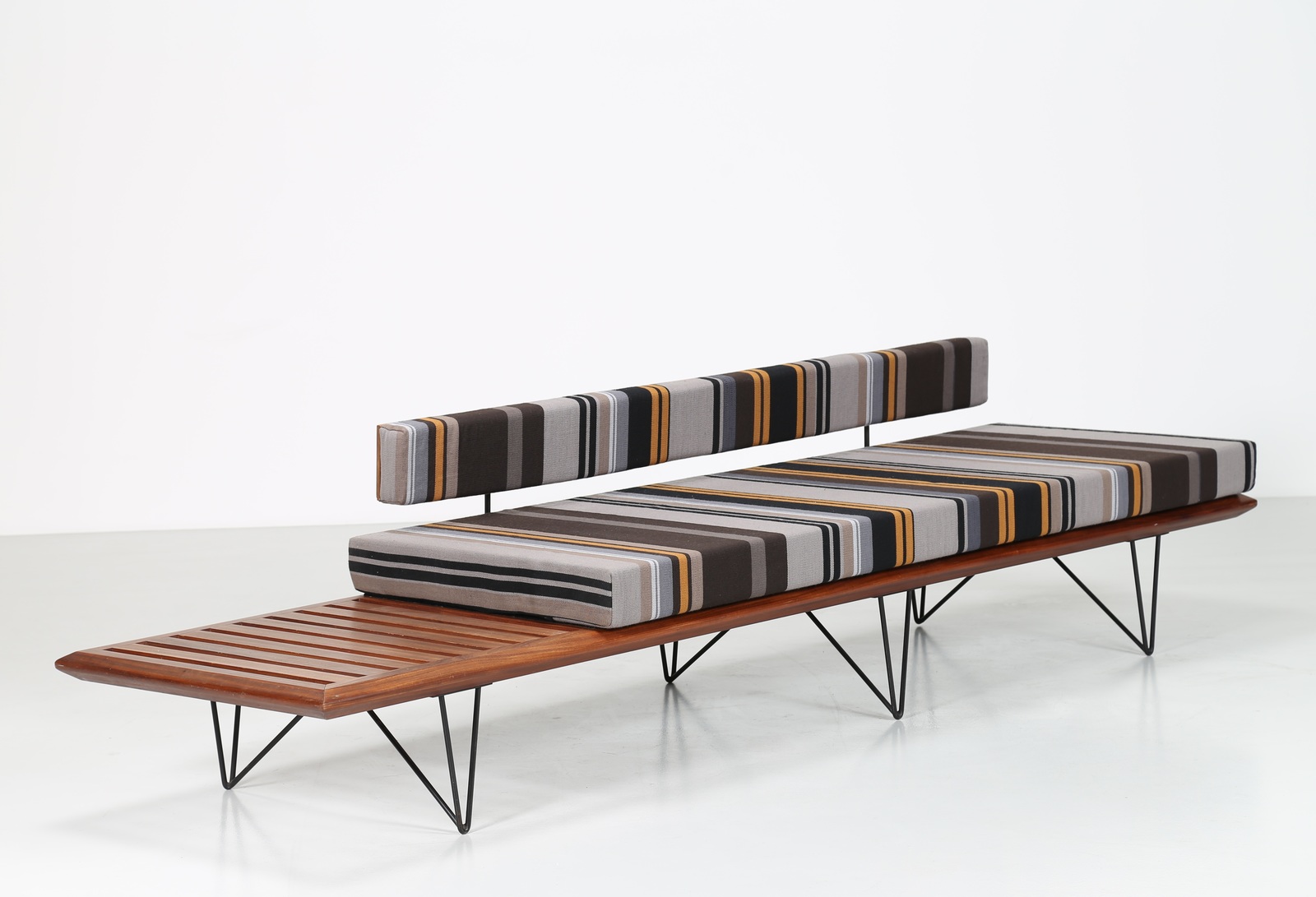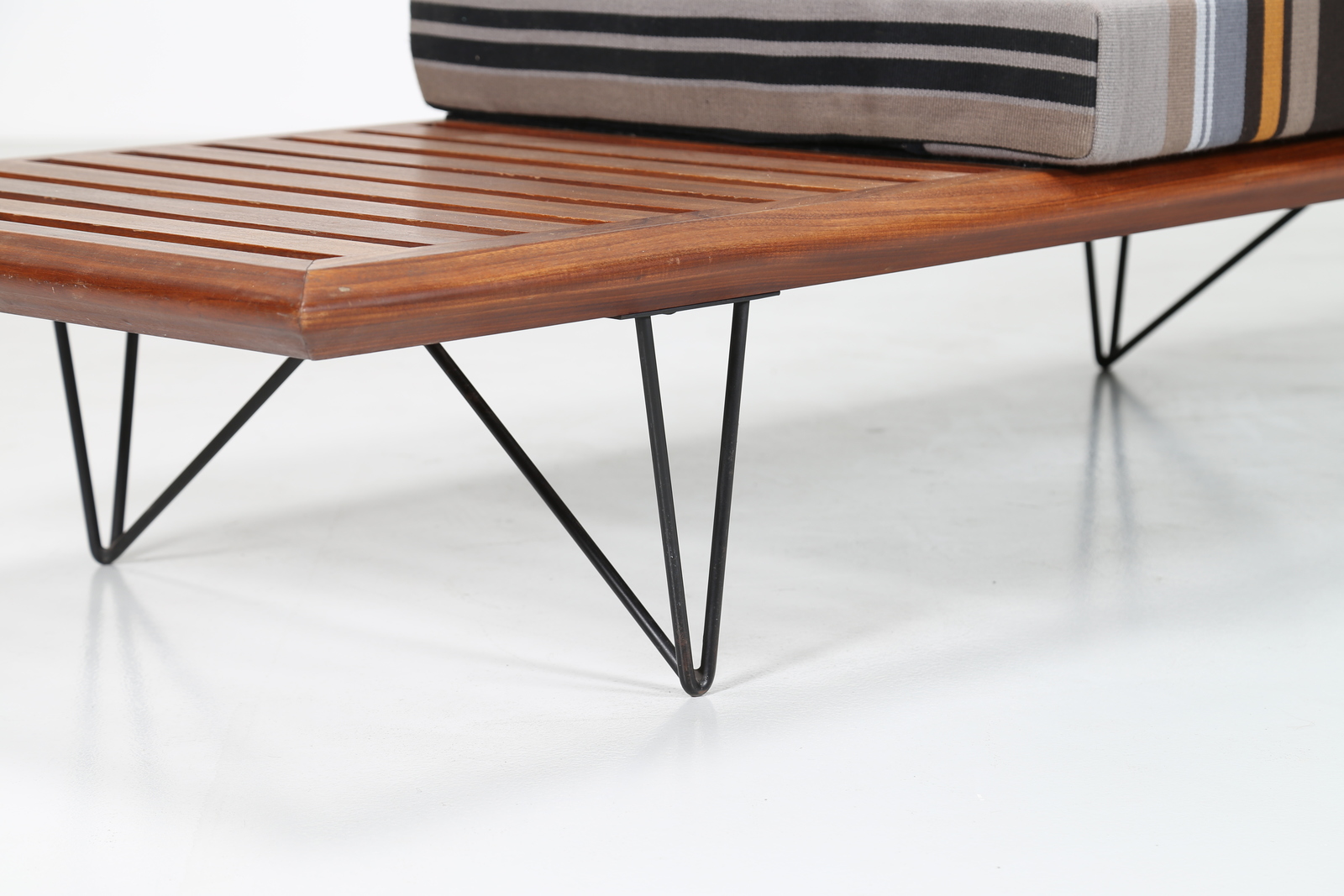 CARLO HAUNER (1927-1997) & MARTIN HESLER (1913-1977) Raro divano in palissandro con gmabe in tondino di ferro e tessuto originale, per Forma Brescia anni 50.