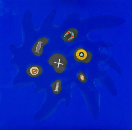 Renzo Nucara Crema 1955 Bang 10-37, 2011 Legno, carta, colore serigrafico, resine ed oggetti, cm. 50x50 in teca di plexiglass Sul verso: firma, titolo e numero d'Archivio. Autentica dell'Artista su foto con Archivio n° 0114188.