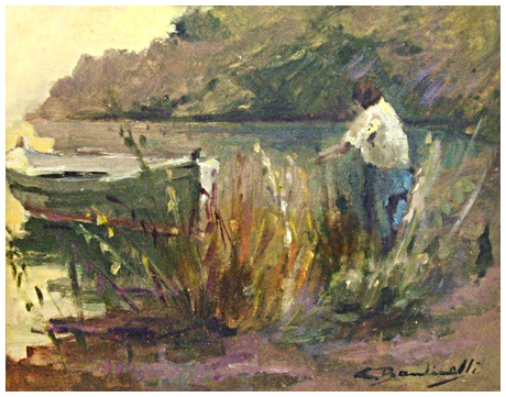 CESARE BANDINELLI Isola d'Elba 1867 - Isola d'Elba 1944 Senza titolo Olio su tavola 17,5 x 25. Firma in b. a d. B.A.: 100