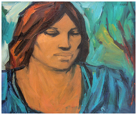 FRANZ FICARA Reggio Calabria 1926 – Milano 1994 Senza titolo Olio su tela 50 x 60. Firma in a. a d.; sul verso firma + timbri “Marco Olrlandi”. B.A.: 150