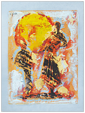 MASSIMO PODESTA' Sarzana 1949 Modelle in formazione T.m. e monotipo su cartoncino 40 x 30. Firma in a. a s.; sul verso titolo, scritta di autentica, firme e tecnica. B.A.: 100