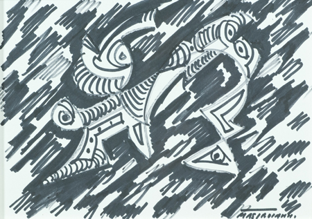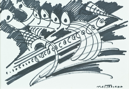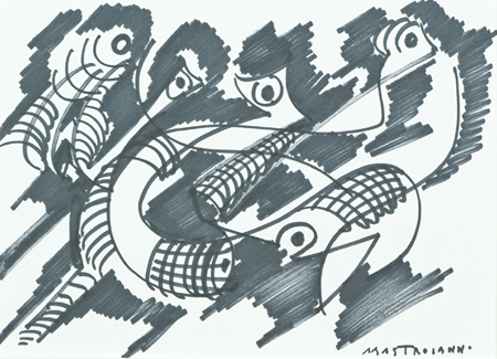 Umberto Mastroianni Fontana Liri (Fr) 1910 - Marino Laziale (Rm) 1998 Lotto unico di tre Opere - "Studio per l'uccello di fuoco", Pennarello su carta, cm. 25x35, firmato in basso a destra, sul verso: etichetta di provenienza; - "Studio per l'uccello di fuoco", Pennarello su carta, cm. 25x35, firmato in basso a destra, sul verso: etichetta di provenienza; - "Studio per l'uccello di fuoco", Pennarello su carta, cm. 25x35, firmato in basso a destra, sul verso: etichetta di provenienza. Autentiche dell'Artista su foto.
