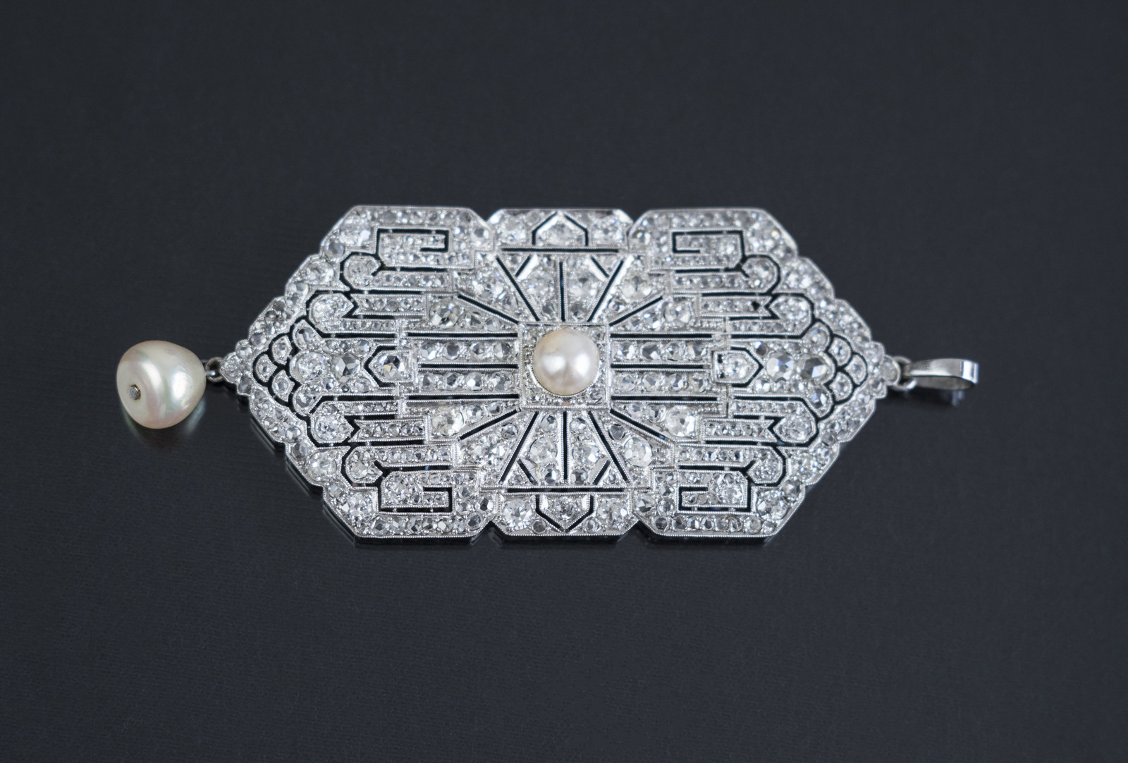 [Nessun Autore] Ciondolo, in oro bianco con diamanti rose cut e taglio vecchio. -. .