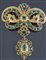 [Nessun Autore] Pendente riproducente un gioiello precolombiano in oro giallo gr 50.30 e circa 23 cts di smeraldi. . -. .